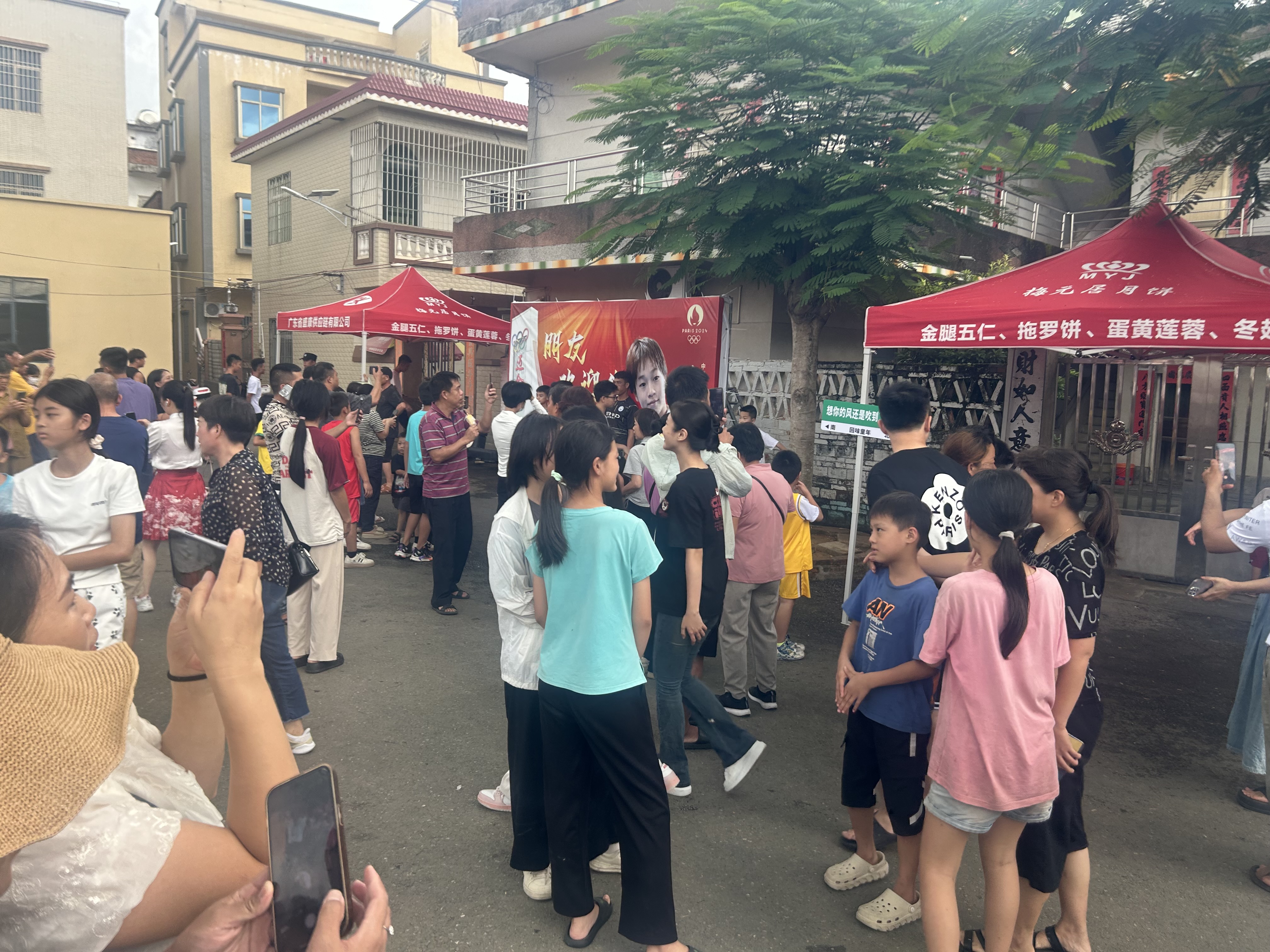 和3年前東京奧運會後相比,今次到訪邁合村的人流量多了數倍,持續時間更長,一定程度上也拉動了當地的消費。一條經過全紅嬋家門口的村道,三四百米的距離,有百餘個小吃攤位。全紅嬋家鄰居說,不管是不是邁合村的,甚至是外省人,只要找得到空位,都可以擺攤。