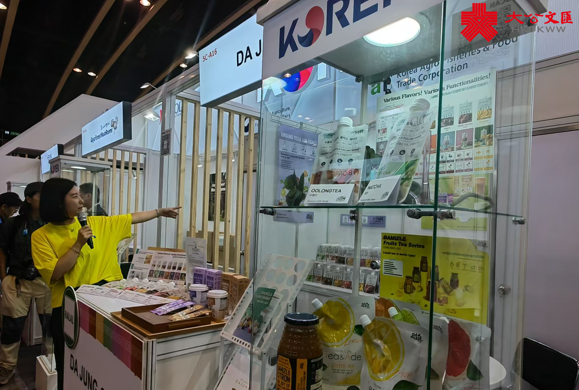 美食博覽當中包括韓國清真認證的即食炒粉絲、香港初創企業研發的3D食品及烹煮機器;茶展亦展出來自斯里蘭卡的一系列有機錫蘭紅茶,以及具備香港特色的港式奶茶等。
