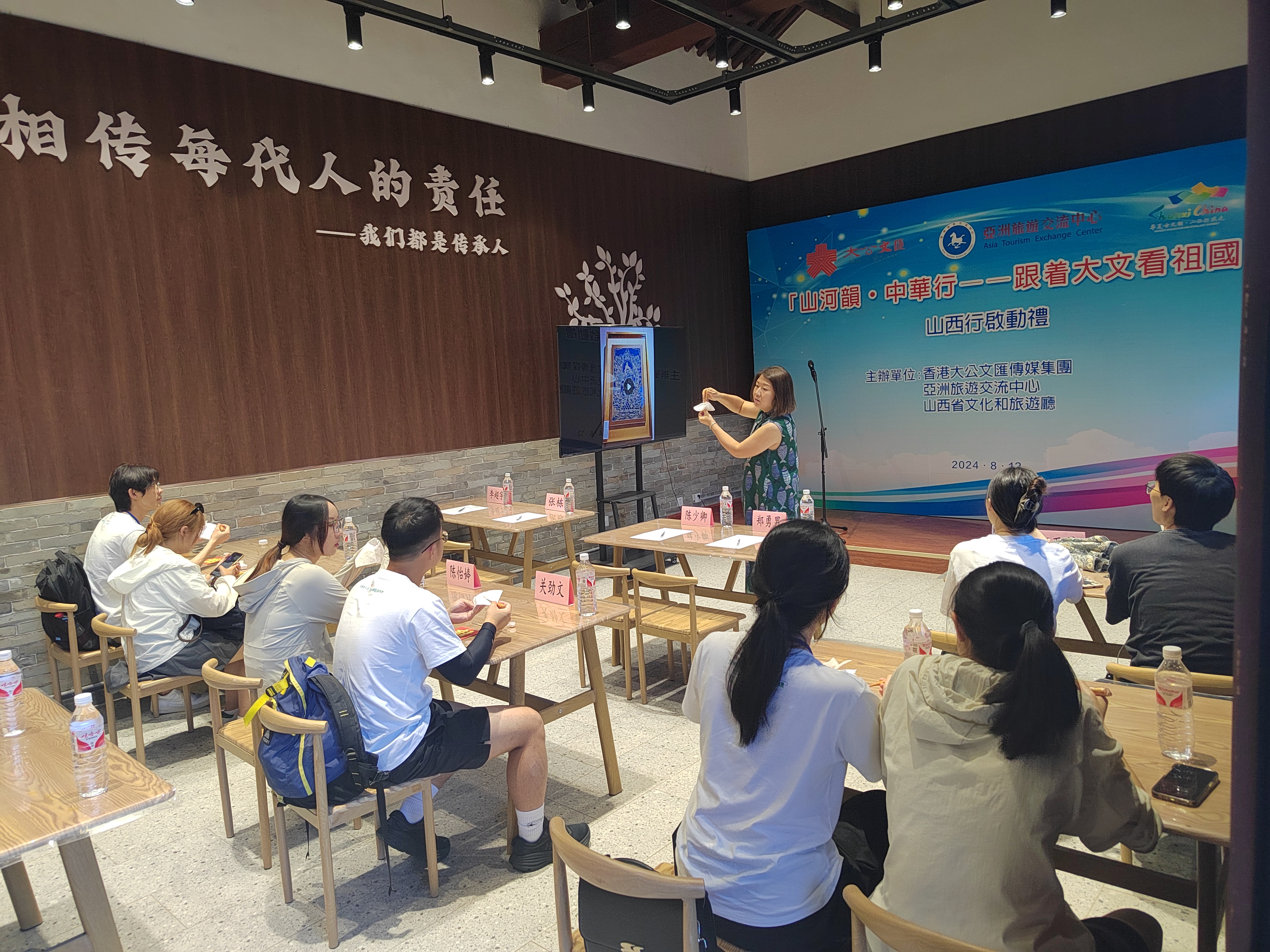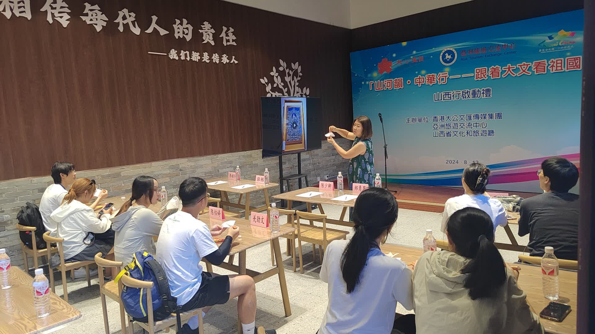 (大公文匯網 記者 楊奇霖)8月12日,「山河韻·中華行——跟着大文看祖國」山西行活動在太原正式啟動。19名香港師生將用一周的時間走訪太原、大同、晉中三地,體驗瀝金彩繪,與非遺親密接觸,走進雲岡石窟、九龍壁、平遙古城等地,在行走中感受中國、山西厚重的歷史文化。