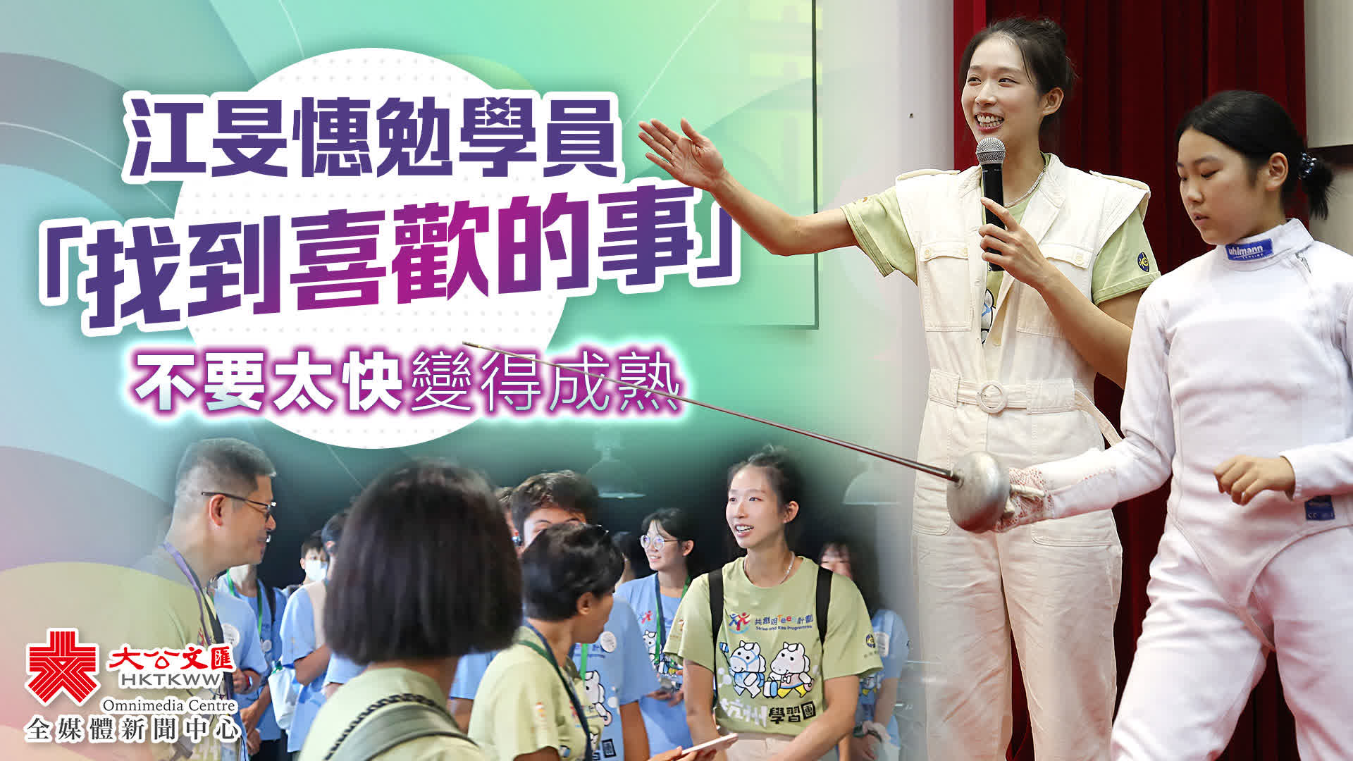 江旻憓表示自己在大學畢業時十字韌帶斷裂,以為沒有機會再玩劍擊,所以康復後就努力成為全職運動員。她見到不少學員表現得太成熟,感到很心痛,指自己因為運動及找到喜歡做的事而一直「忘記變老」,現時都學習變得成熟一點,希望學員找到喜歡的事,不要太快變得成熟。江旻憓亦回應傳媒,解釋早前形容做香港運動員好幸福,是因為自己「搵到堅持嘅運動」,「可以做自己鍾意做嘅嘢」,覺得自己很幸福。她又指前輩資源很少,但仍然犧牲不少爭取成績,令新一代的劍擊運動員有更多資源,因此也很希望所有運動員都有機會「搵到咁鍾意做嘅嘢、好值得去堅持嘅事」,自己也很不捨得退役,「一輩子都會打劍」。
