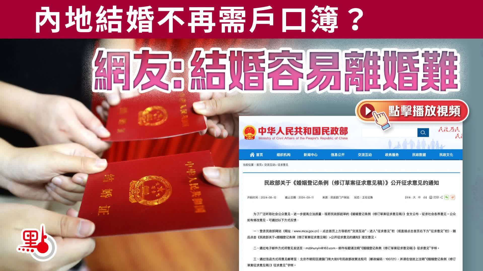 大公文匯全媒體報道,8月12日,國家民政部網站公布《婚姻登記條例(修訂草案徵求意見稿)》,向社會徵求意見。相比原條例,徵求意見稿在登記程序上作了較大修改,其中「結婚不需要戶口簿」引發熱議。