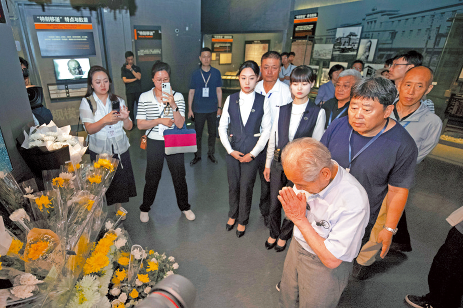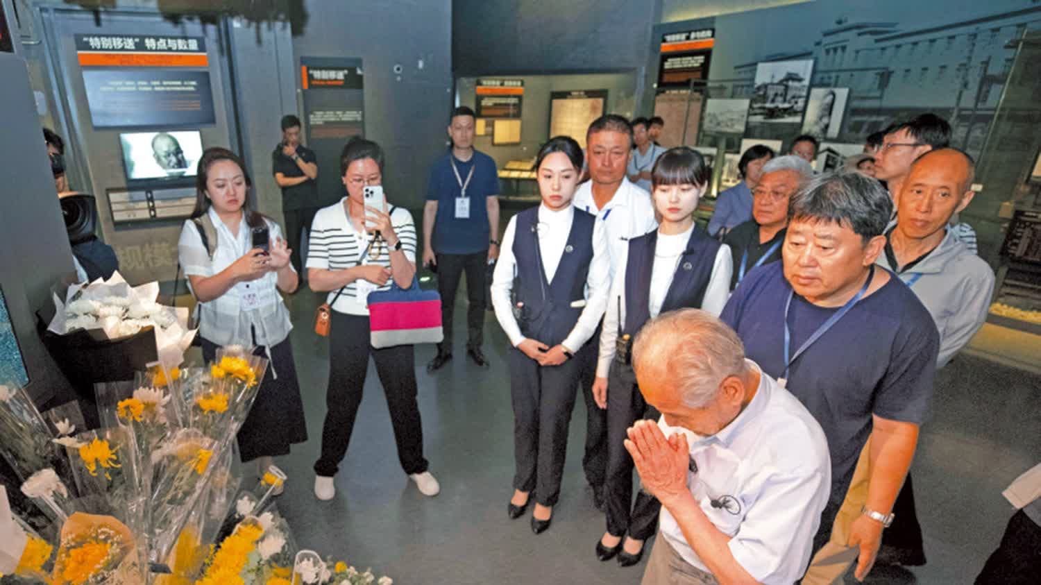 在侵華日軍第七三一部隊罪證陳列館參觀時,他看到了「731部隊」的合影、成員名簿、用於繁殖鼠疫菌的金屬容器、玻璃罐、手術刀和顯微鏡等。這令他駐足、神情凝重,彷彿回到曾經的「夢魘」時代。