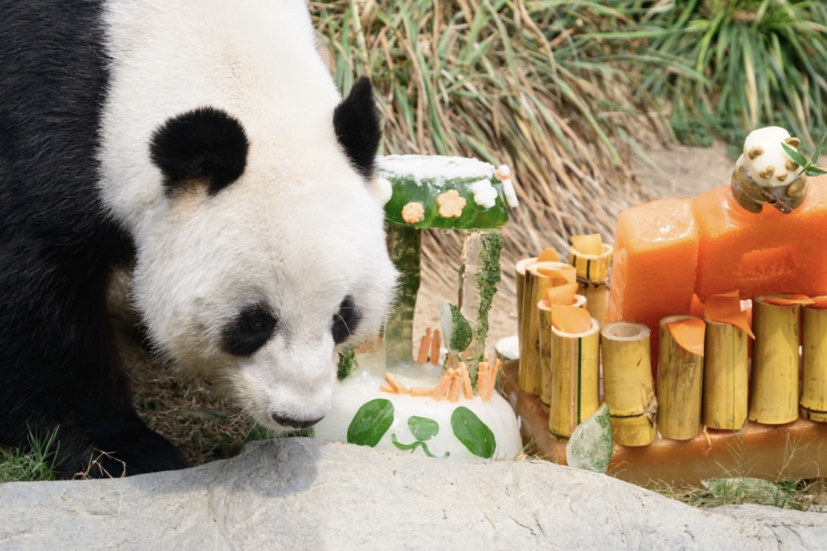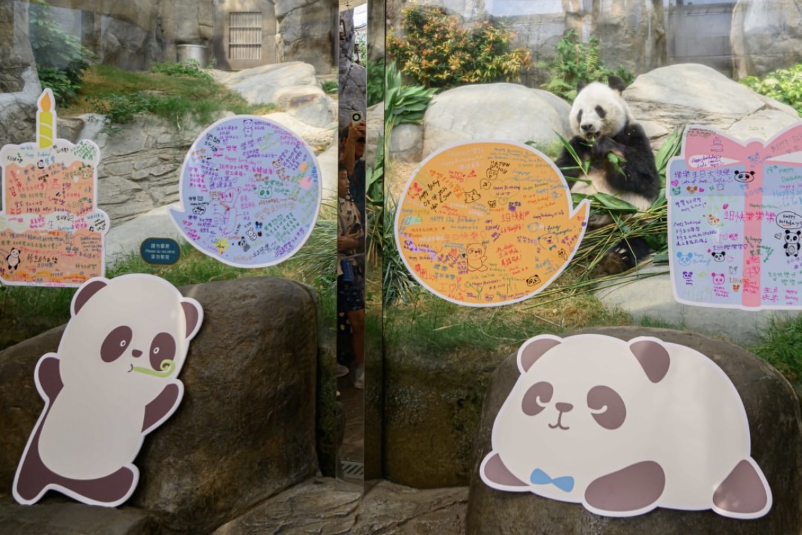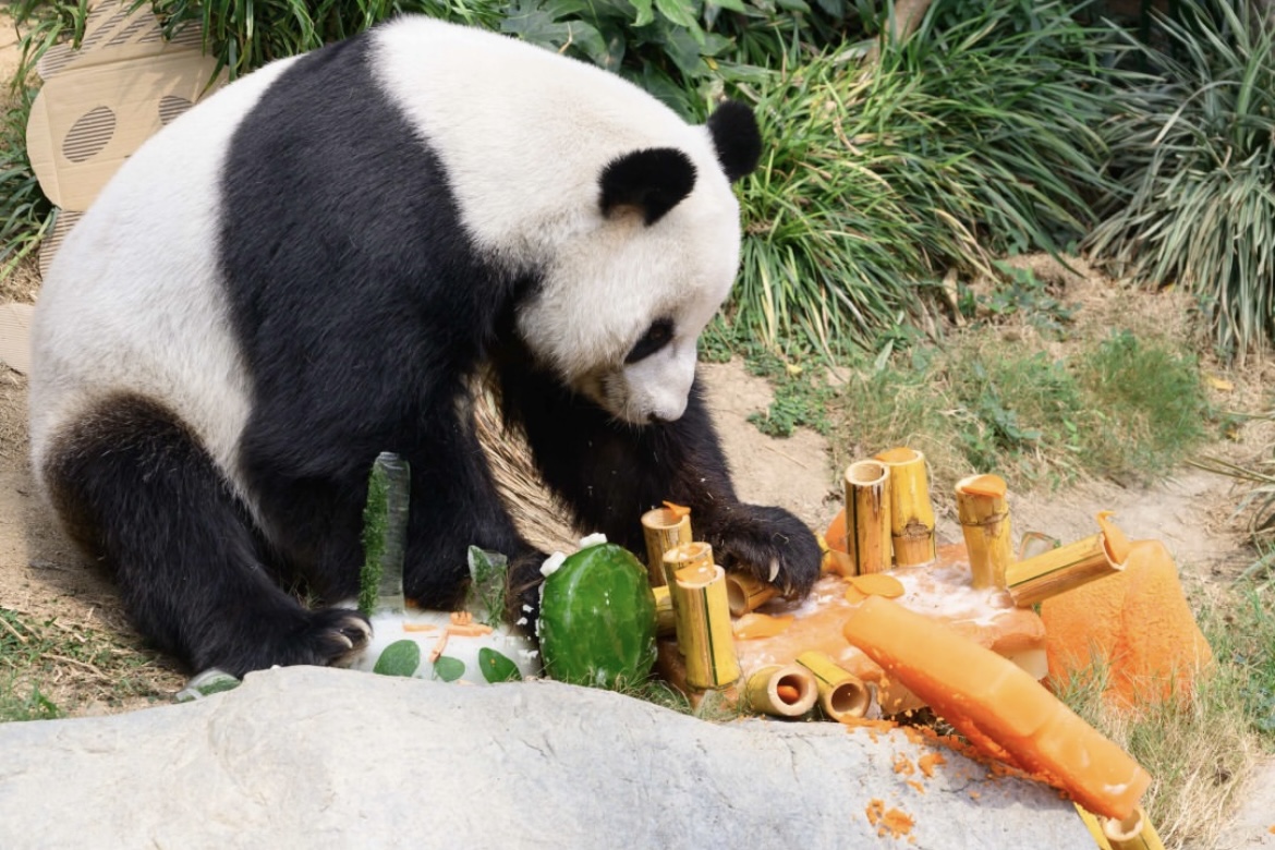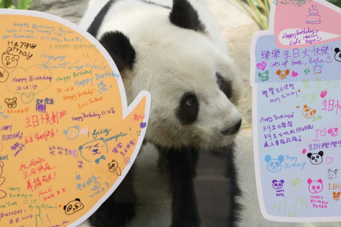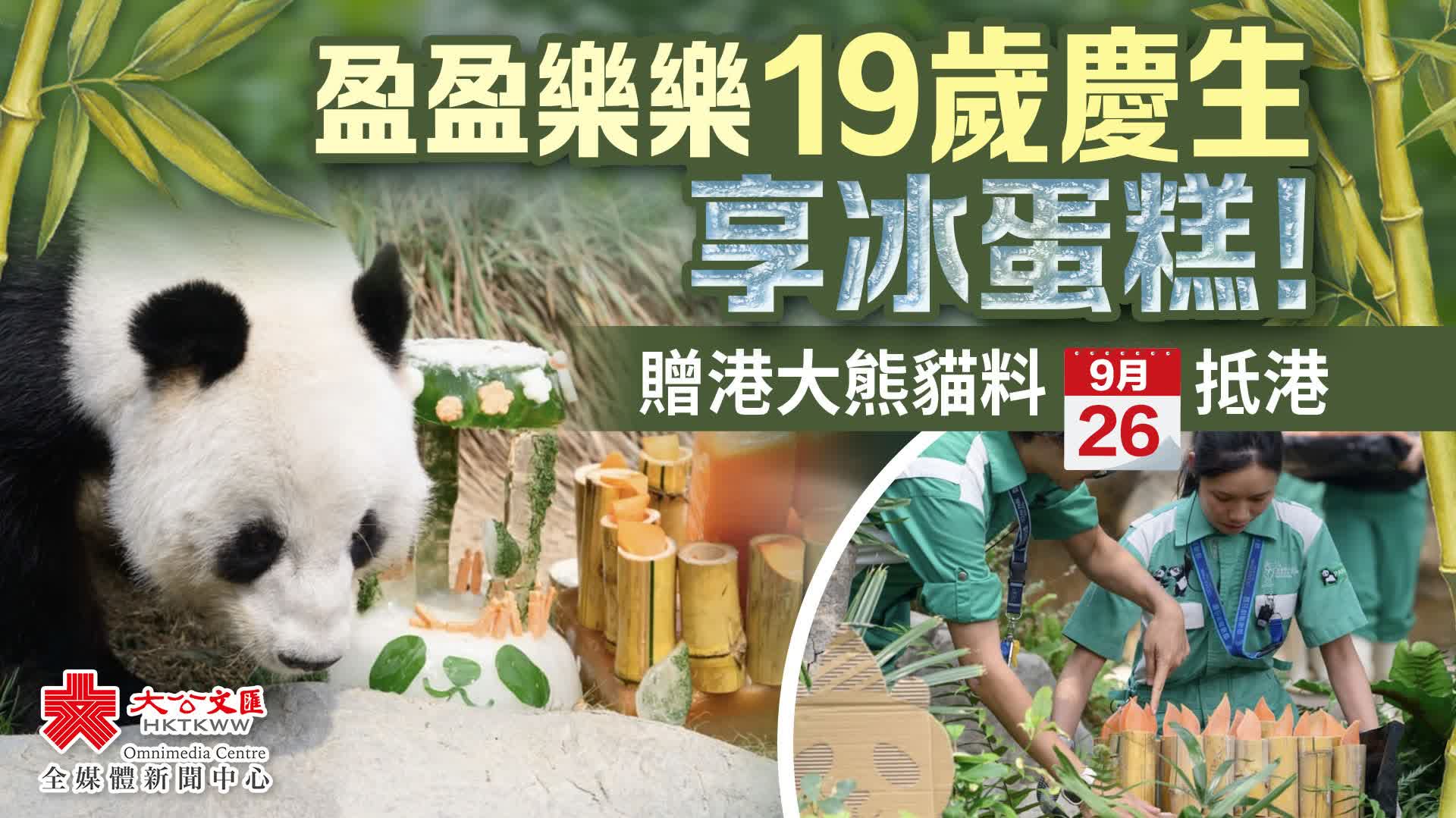 盈盈和樂樂都是2005年出生的大熊貓,生日分別是8月8日及8月16日。今年,已經是牠們來到香港的第17年。同往年一樣,園方為牠們舉行了盛大的生日派對,並送上色彩鮮艷的冰蛋糕,材料全是牠們最愛吃的竹子、甘薯、胡蘿蔔、沙葛和蘋果!童心未泯的樂樂,當日圍繞牠的生日蛋糕探索一番後,坐着享用牠最愛的竹子,向訪客展現可愛的一面。派對當天,眾多訪客也來到園內為盈盈、樂樂送上祝福,在巨型生日賀卡上送上了自己的愛心話語!