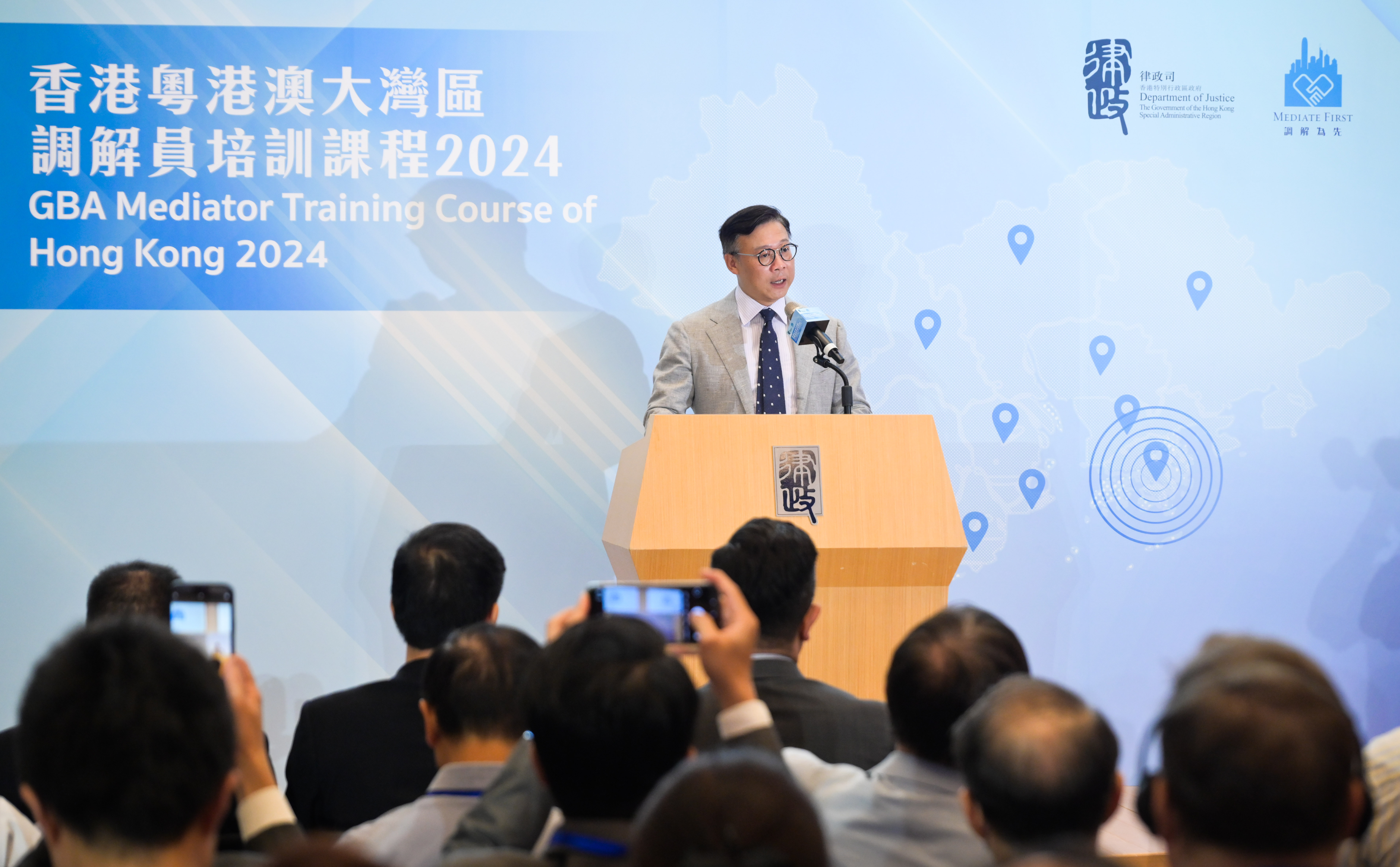 律政司副司長張國鈞致開幕辭時表示,大灣區具「一國、兩制、三法域」的獨特法律環境,在國家發展大局擁有重要戰略地位,也是香港作為國家境內唯一普通法司法管轄區,主動對接國家發展戰略的最佳切入點。