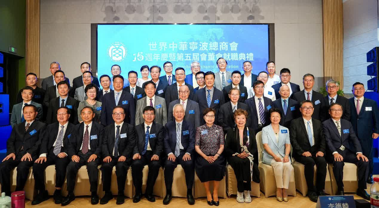 典禮上,主禮嘉賓香港貿易發展局駐中國總代表鍾永喜先生、寧波市政協主席陳龍先生致勉勵詞。世界中華寧波總商會名譽贊助人林鄭月娥女士頒發委任狀給新任會長李德麟先生,並頒發聘書給世界中華寧波總商會名譽會長包陪慶教授。其後,李德麟會長和包陪慶教授共同頒發聘書給當日出席慶典活動的所有世寧會副會長及會董。浙江省委統戰部、寧波市委統戰部還分別向世界中華寧波總商會贈送了紀念品。