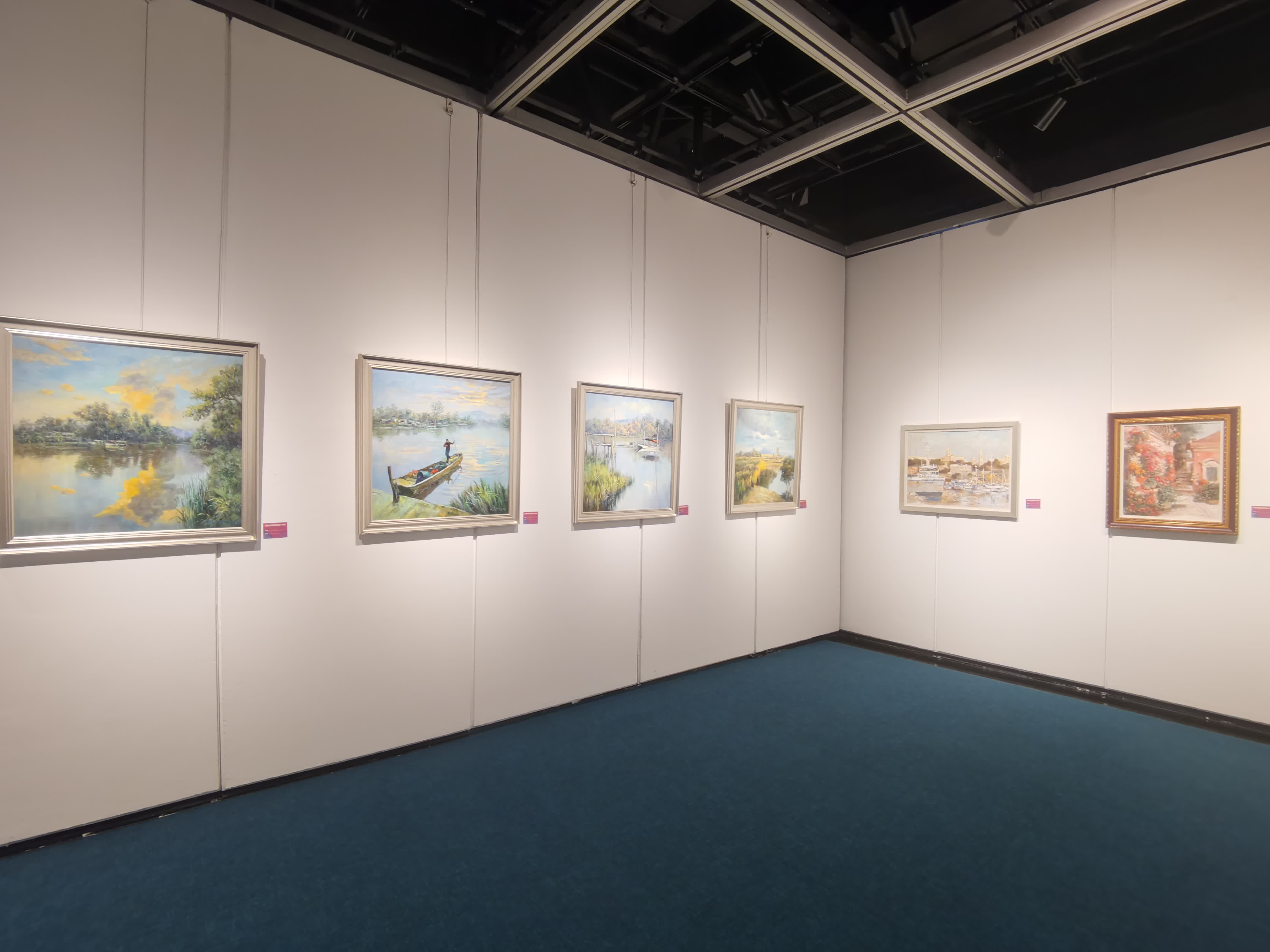 整個展廳展示油畫題材充實多元,參展者筆力扎實,用色構圖令觀者深入其境,或感受大自然之神奇,或是在生活場景中感受一種流動的幸福和美好。