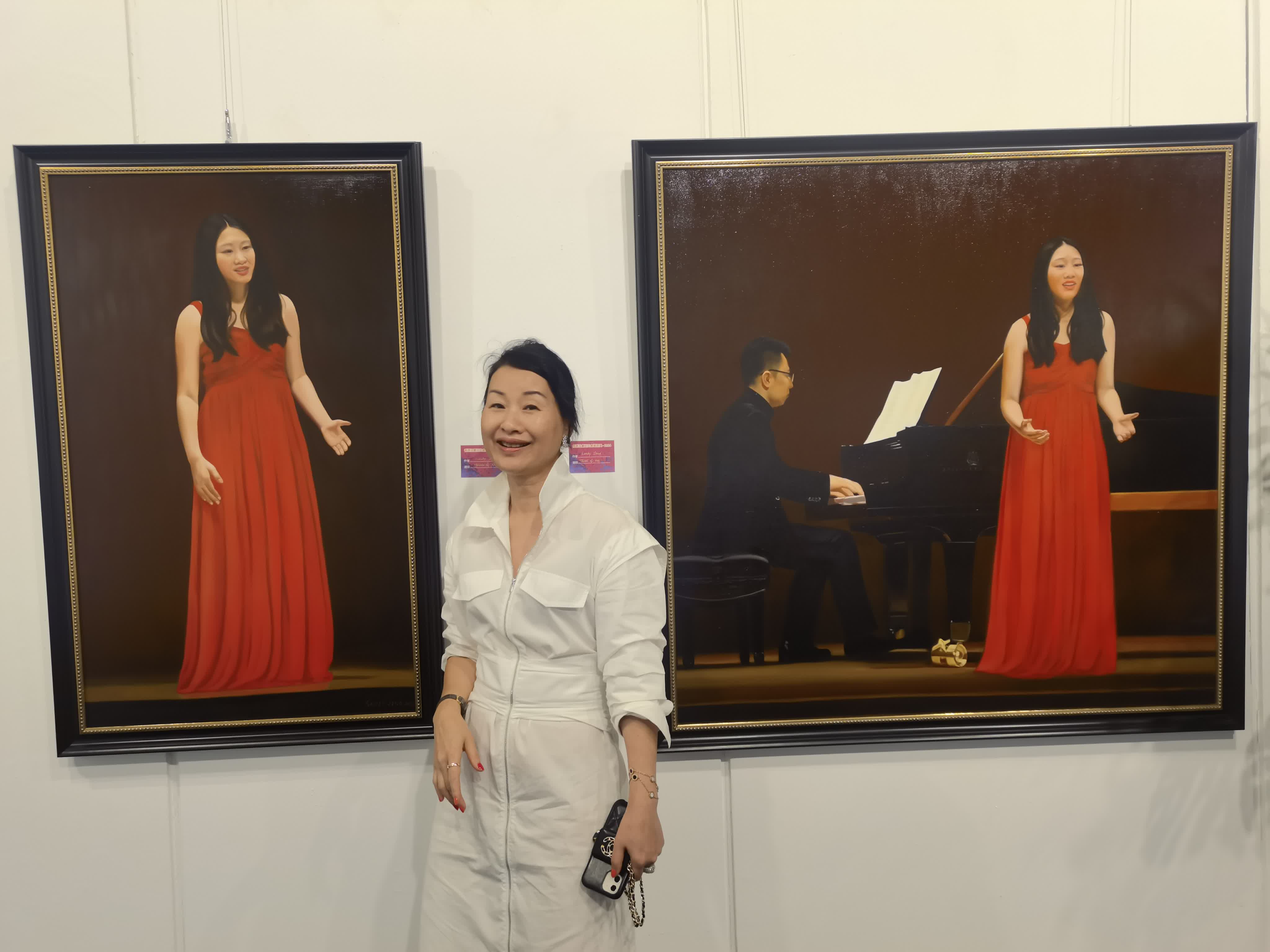曾建紅(Sandy Zeng)是其中一位作品被選送入京的參展者,她創作的作品《Think of me》畫的是她女兒的一次音樂會,台上16歲的女兒在演唱《歌劇魅影》選段《Think of me》,她神態到位,演唱投入,十分寫實傳神,「我想展示女兒的演唱姿態,藉此傳遞一種向上的力量。」