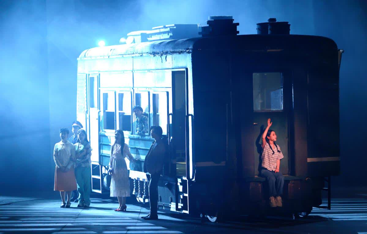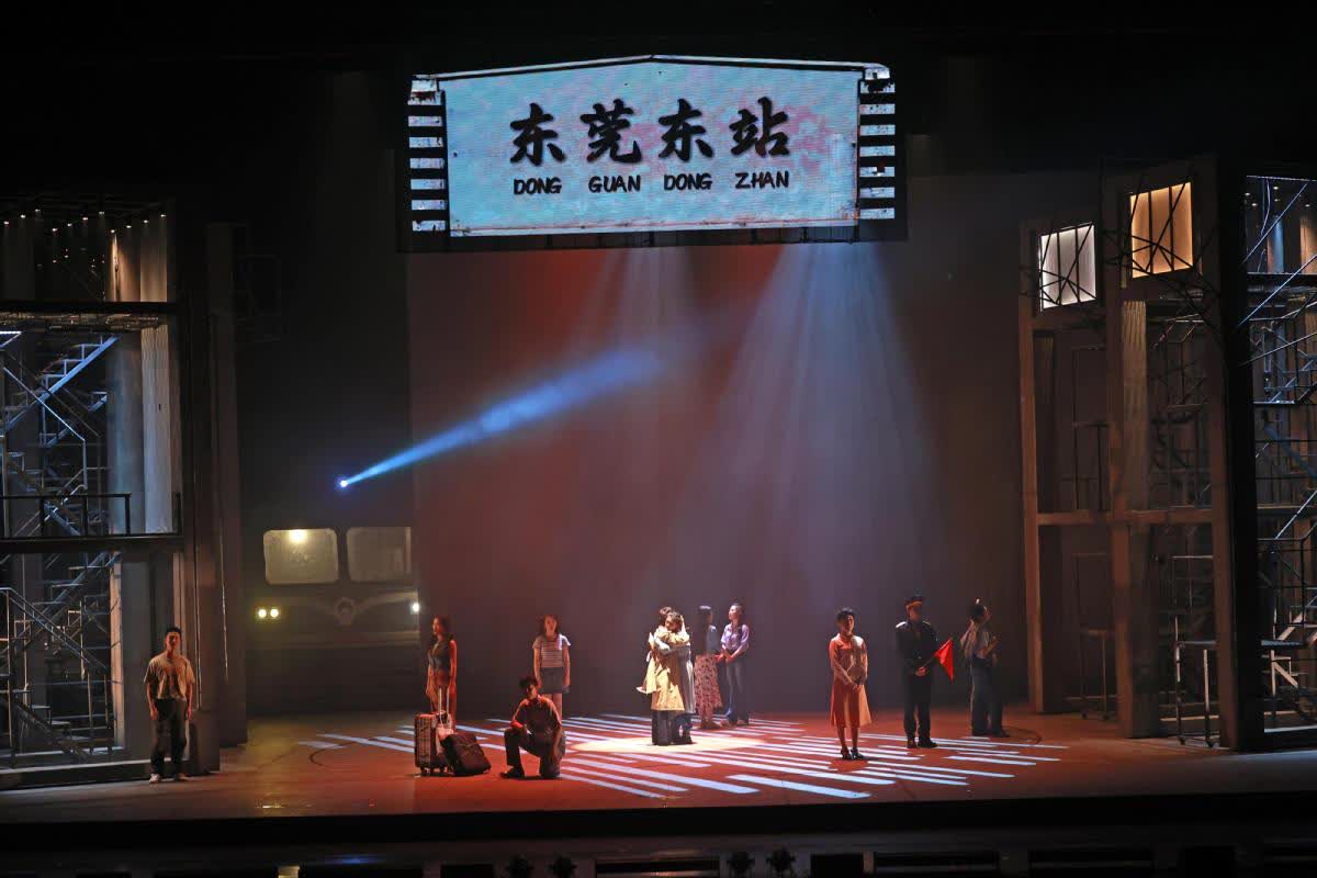 「東莞東,夢想就讓遠行承載……」當晚,大幕拉開,一輛綠皮火車疾馳在二七劇場的舞台之上。打工人追求美好生活的故事,承載無數人的青春奮鬥的經歷,讓觀眾無不動容,大家跟着東莞人奮鬥的腳步,一起走進那些年的回憶之旅,一起回望偉大祖國改革開放進程中的輝煌……