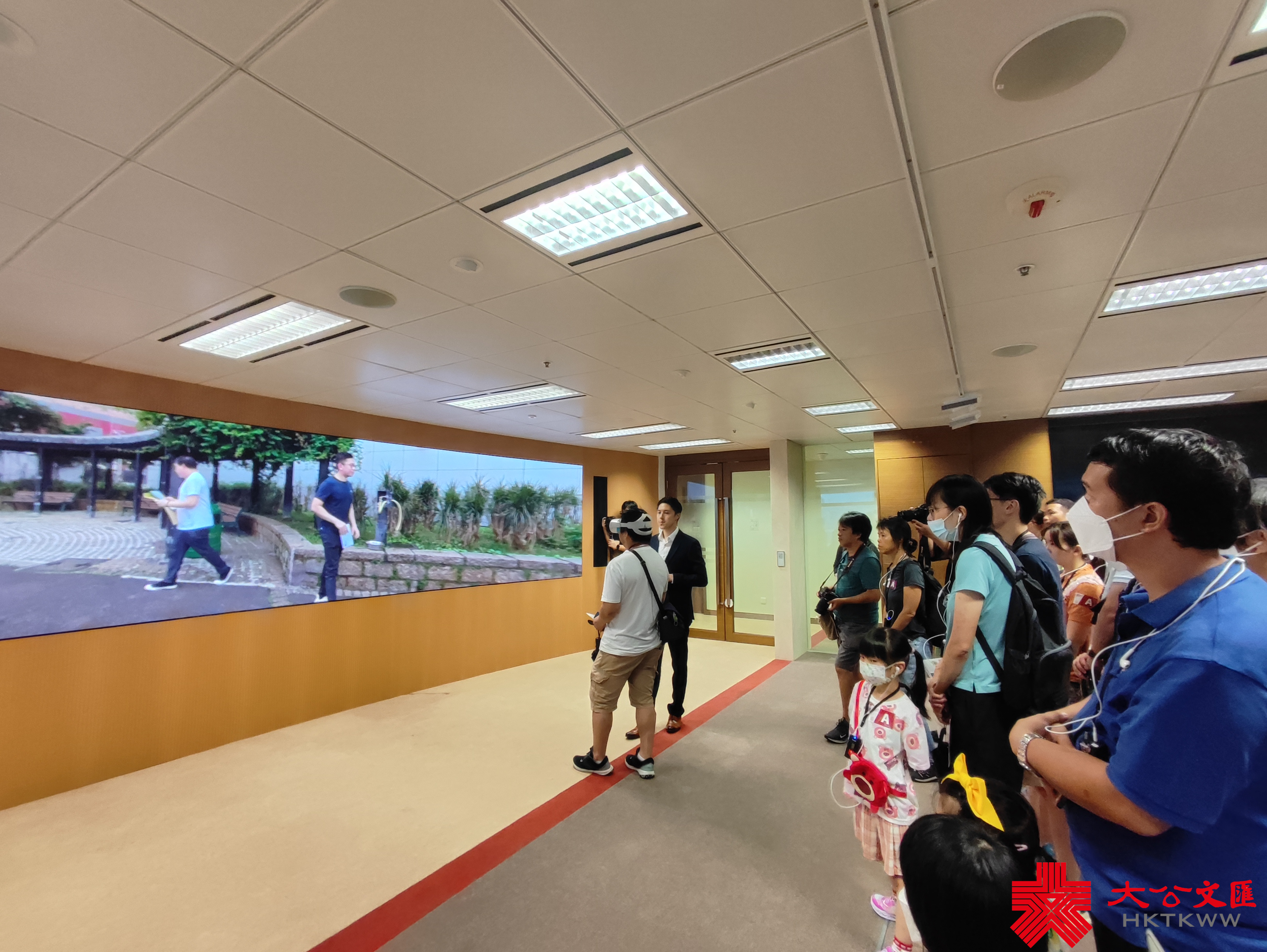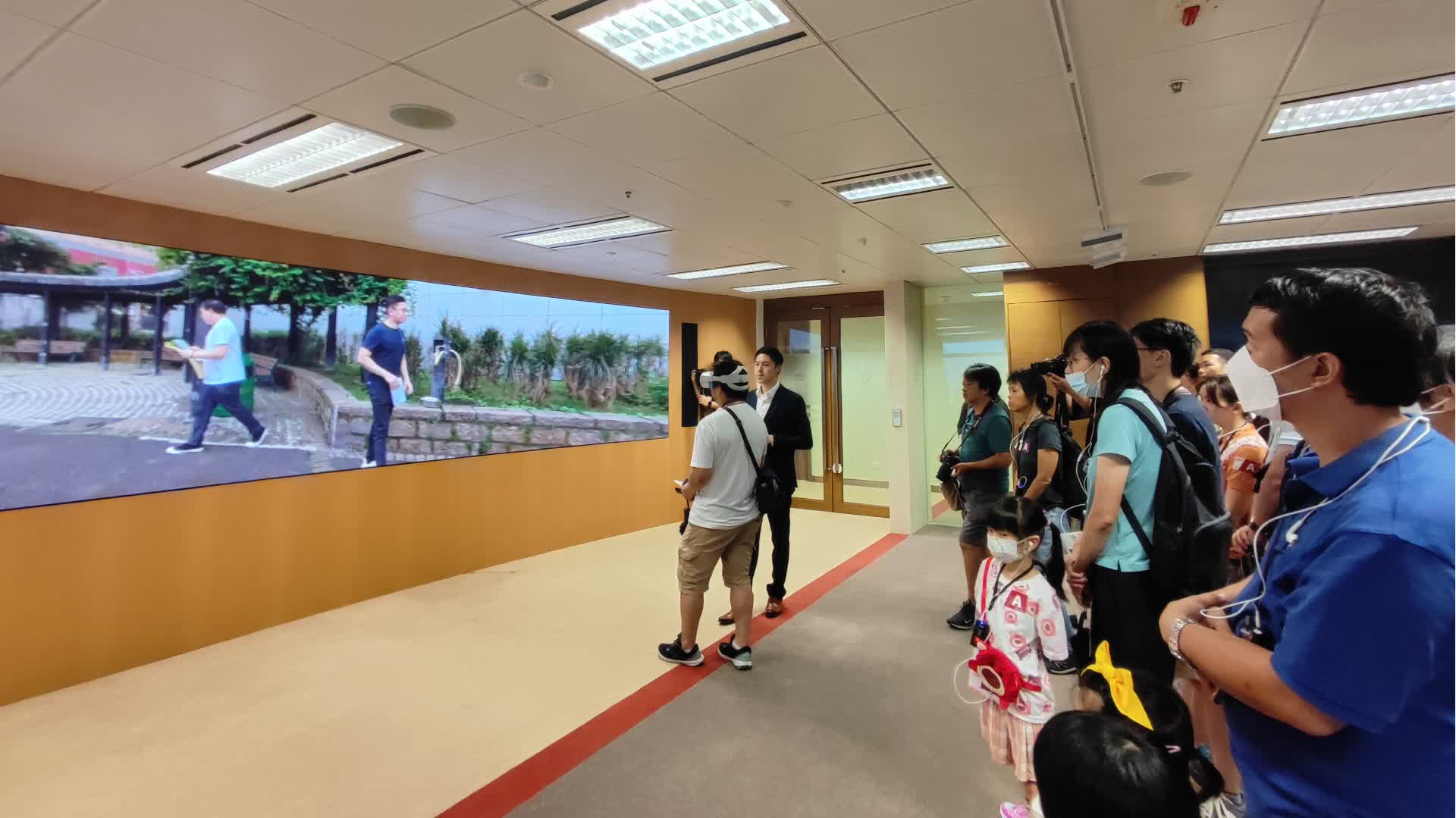 在國際廉政學院,訪客有機會戴上VR眼鏡,透過虛擬實境體驗廉署人員的工作,模擬「法團主席與工程判頭在公園交收贓款」,訪客需在遠處監察及記錄會面情況,嘗試判斷下一步行動,以確認判頭身份。期間要留意所有的細節,包括文件夾的顏色,並懂得隨機應變。當交易結束後,若交易者分頭立場,廉署人員需盡快判斷跟蹤哪一位疑犯。黃姓小朋友表示,他在模擬的過程中多次估算到了正確答案,今天來到廉政公署參觀,是因為媽媽告訴他有關開放日的消息。