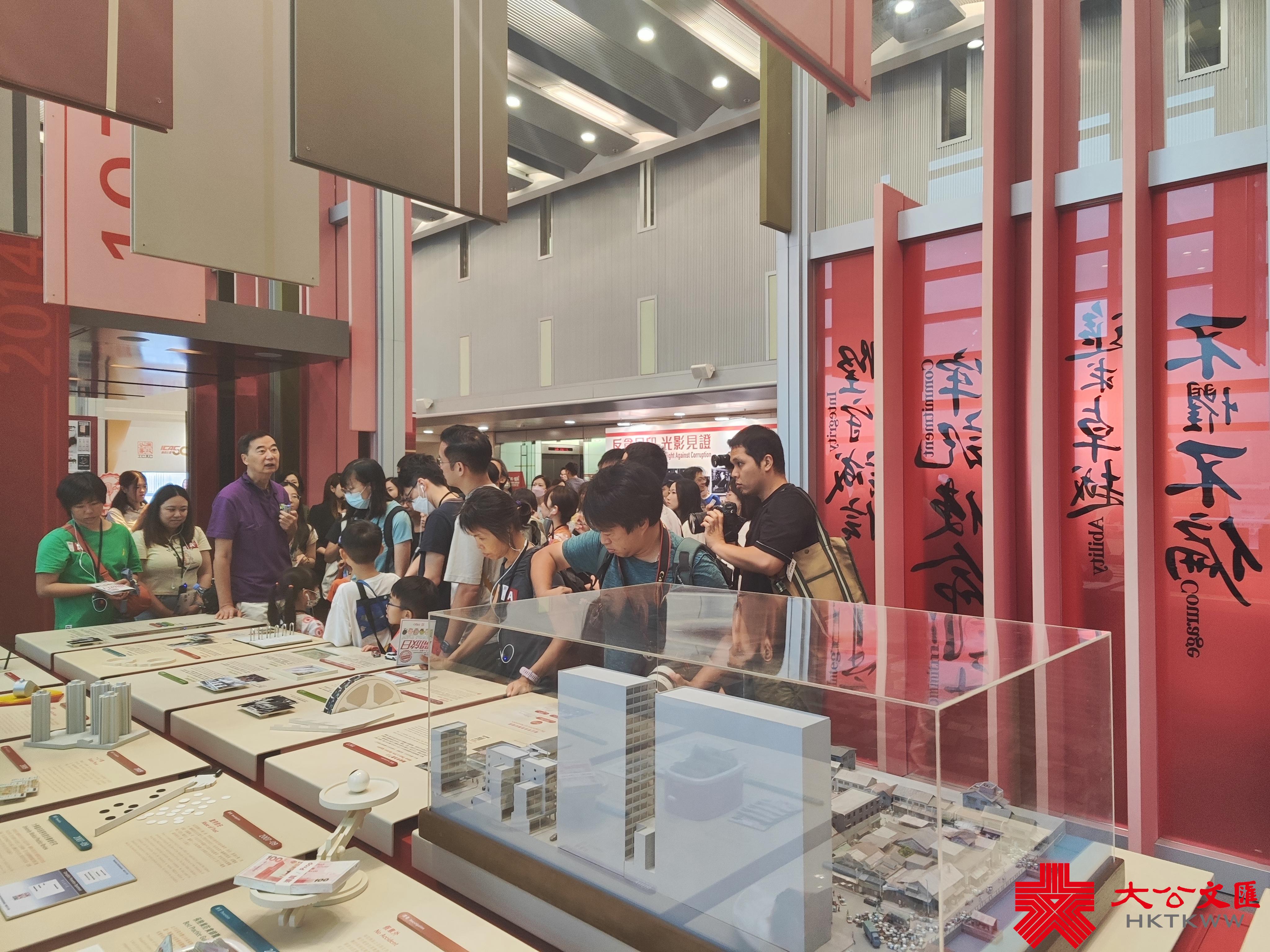 在重大案件的展區,講解員向公眾介紹了油麻地果欄案件中警員集體貪污、後又被集體特赦的情節。而槍械展示區也引起了公眾們濃厚的興趣。一位李小姐好奇地把玩着手銬,對記者說「沒想到手銬原來這麼重」。對於伸縮棍,她看一眼便知道怎麼用「因為在影片中見到過廉署人員追擊嫌犯。」有訪客來自廣州,表示體驗有趣,又指自小看港產片,她認為廉署人員與電視劇呈現的形象沒太大分別,讚揚他們儀表堂堂。