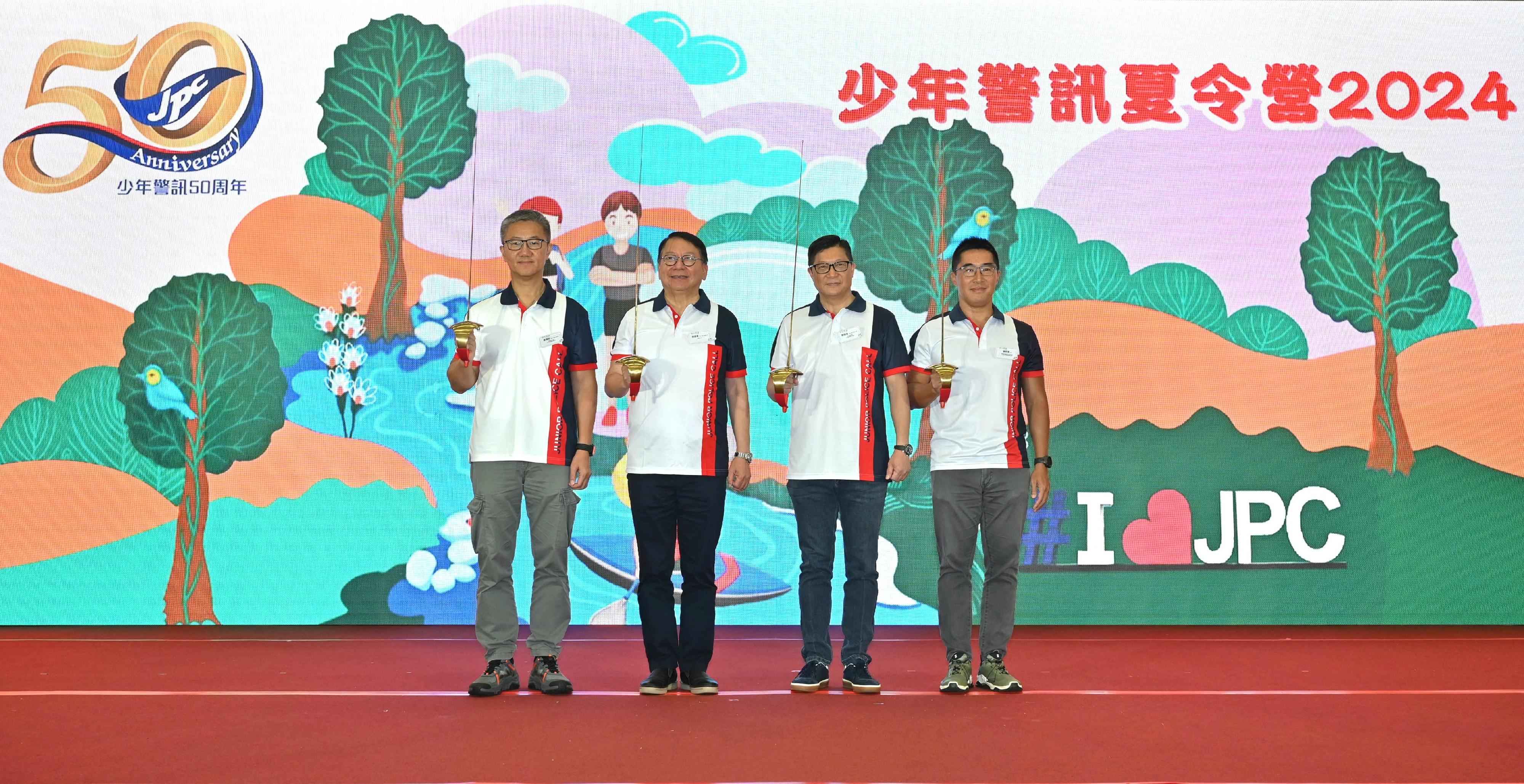 大公文匯全媒體報道,「少年警訊夏令營2024」今日(17日)於八鄉少訊中心開展,政務司司長陳國基、保安局局長暨少年警訊總名譽會長鄧炳強、警務處處長暨少年警訊副總名譽會長蕭澤頤及警務處助理處長(公共關係)暨少年警訊中央諮詢委員會主席陳思達主持此次開展禮。