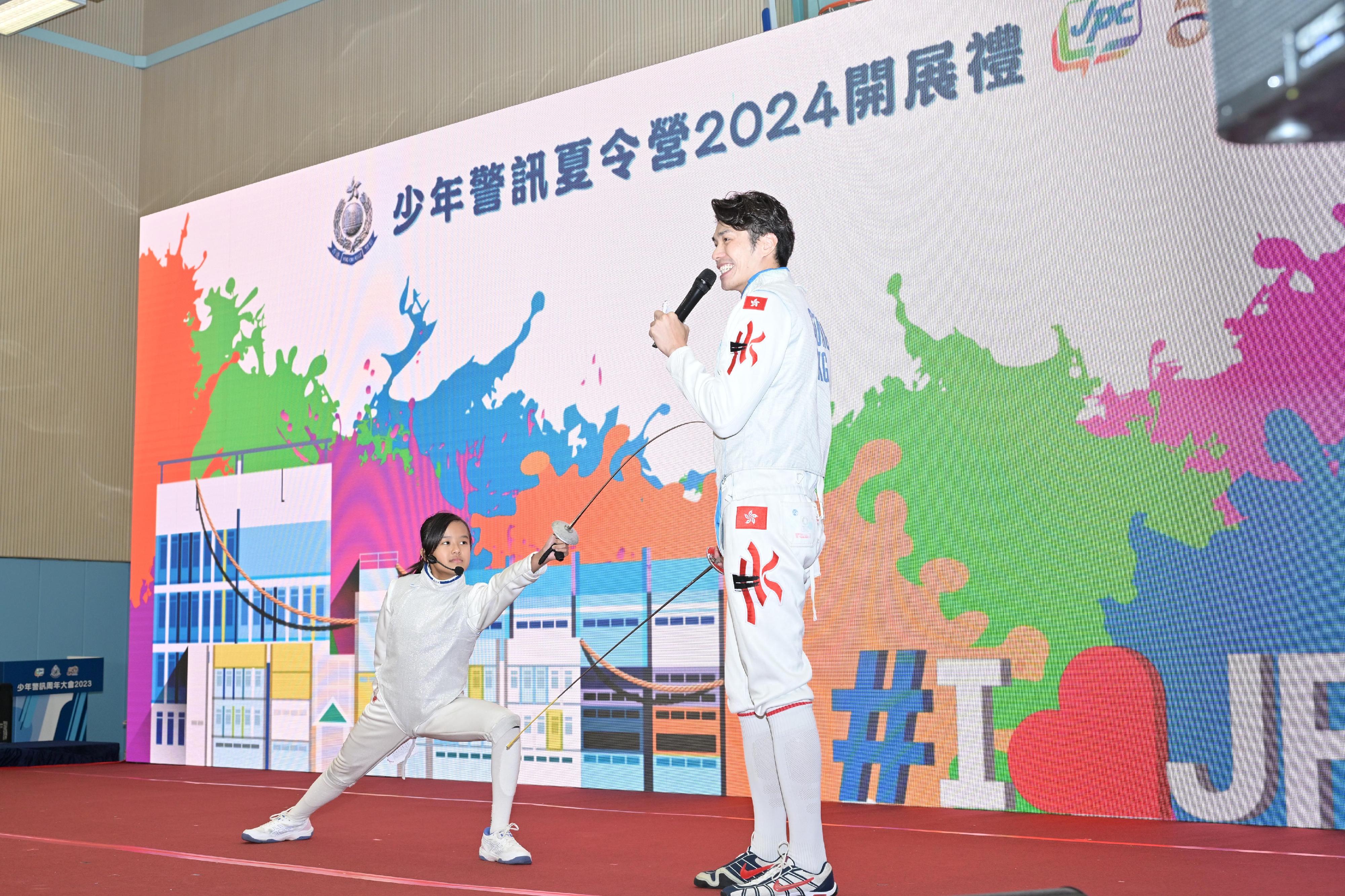 開展禮上,前香港劍擊代表隊成員張小倫向一眾嘉賓及少訊會員分享劍擊心得,並親身示範揮劍技巧。陳國基及其他主禮嘉賓在開展禮後一同參觀夏令營的活動,並與少訊會員進行交流。