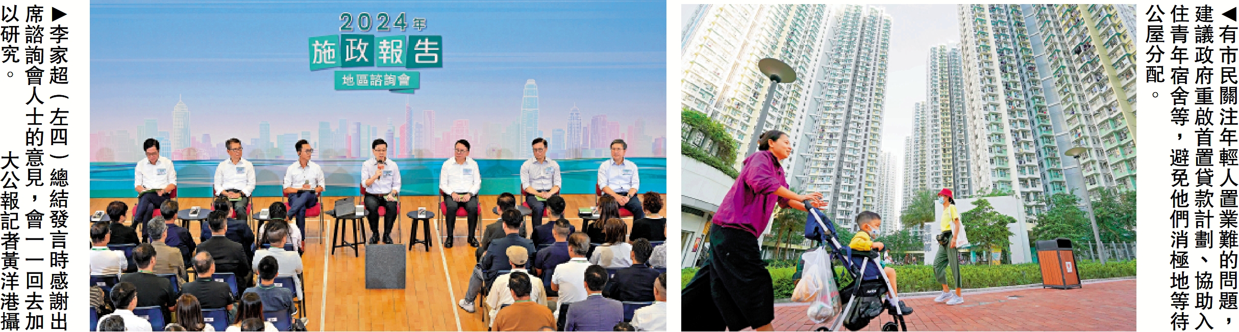 有出席市民關注房屋、醫療、安老等民生議題,建議政府強化大灣區合作、在新界提供更多社區設施、幫助青年置業等。李家超強調,會繼續釋放土地發展潛力,同時向市民介紹好發展工作。\大公報記者 黃釔淼、陳樂