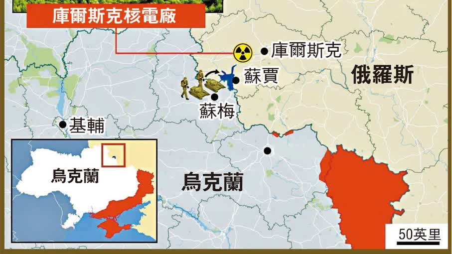 俄國防部還提到,攻擊核電廠將污染周邊大片區域。據路透社報道,烏部隊本月6日攻入庫爾斯克州,並宣稱從那天之後,烏軍已掌控1,150平方公里俄領土,並控制82條村落。 然而庫爾斯克核電廠目前仍處於俄方控制下。