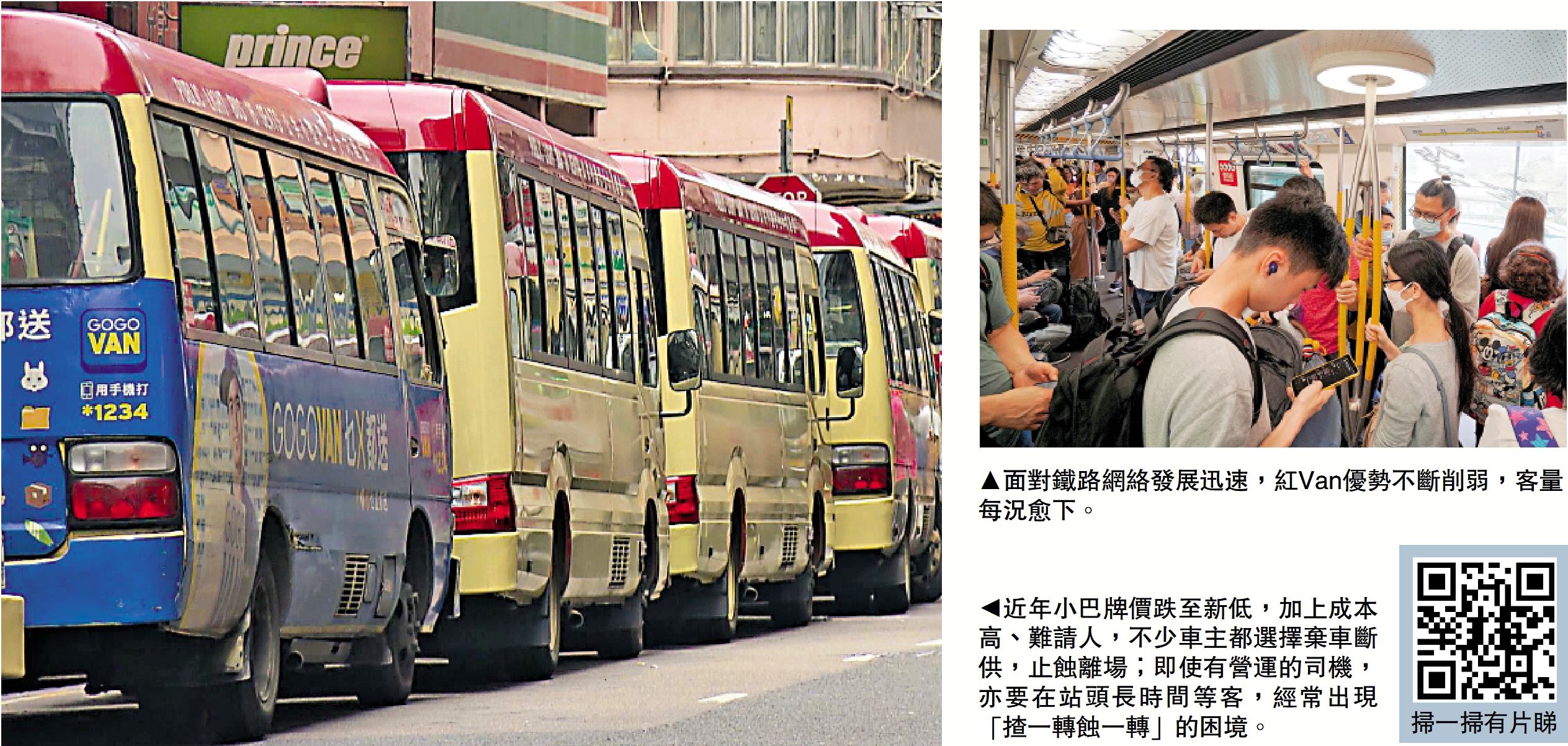 香港公共小巴車主司機協進總會主席張漢華向《大公報》記者表示,本港鐵路過往數十年發展迅速,不單在新發展區,亦在市區持續擴展,包括東鐵過海段、屯馬線、港島線西延線及南港島線等,削弱了紅Van的優勢,令乘客量不斷下跌,車主及司機收入下跌,司機亦缺乏,加上成本保費等持續上漲,巴士公司的競爭,不少車主寧願停運,節省人工及燃料等費用,比「揸一轉蝕一轉」還好。