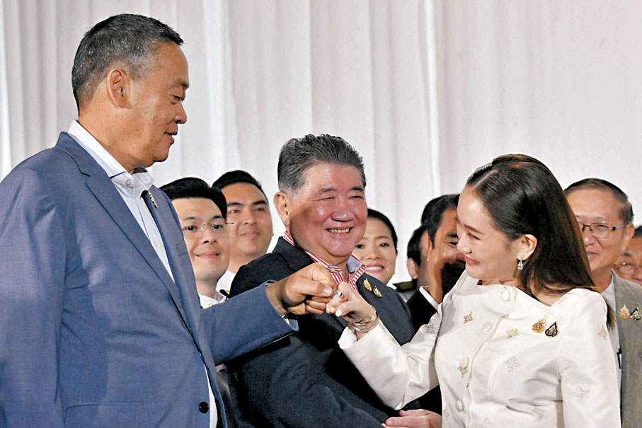 泰國國會下議院上周五以319票支持、145票反對和27票棄權,大比數通過執政聯盟唯一提名候選人佩通坦出任總理,接替早前被憲法法院裁定任命閣員做法違憲、遭解職的賽塔。佩通坦周日早上與獲特赦結束假釋的父親他信擁抱,隨後在為泰黨總部跪拜泰王肖像,正式接受任命御令。