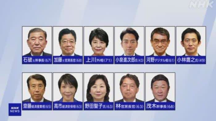 截至目前,已經有包括自民黨原幹事長石破茂、前內閣官房長官加藤勝信、現任數字大臣河野太郎在內的11人表示將參加此次選舉。