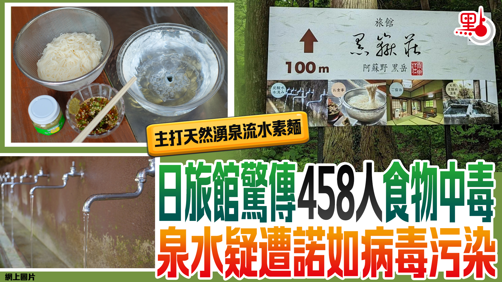 涉事旅館名為「黑嶽莊」,地處偏遠,以天然碳酸湧泉的流水素麵聞名。據悉,自8月5日起陸續出現用餐後有發燒、嘔吐等症狀的人,經衞生所檢測發現感染諾如病毒。截至上周五(16日)下午4時,確認共有458人食物中毒,其中2人一度住院,隨後已出院。