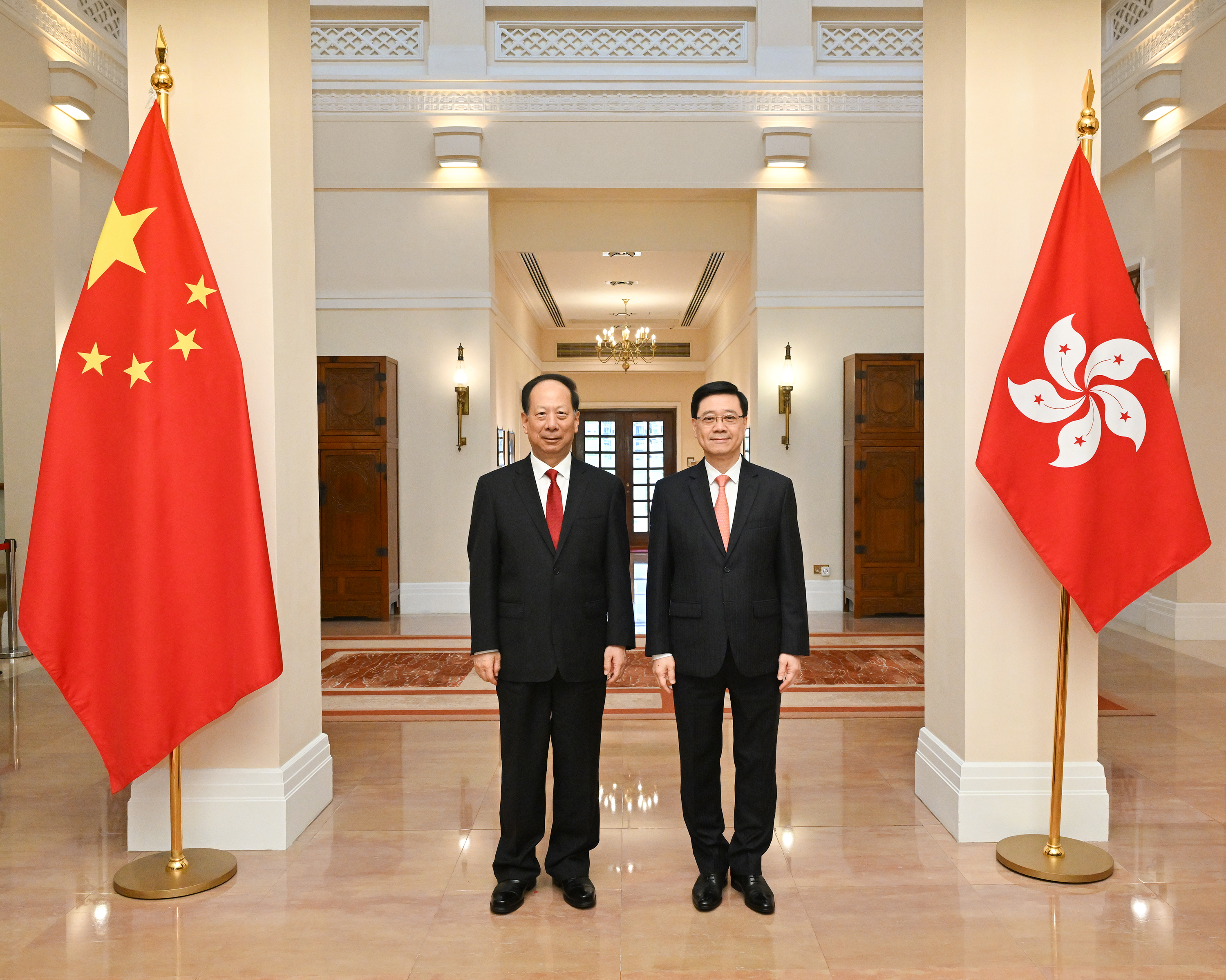 大公文匯全媒體報道,香港特區行政長官李家超今日(19日)在禮賓府與中共中央政治局委員、全國政協副主席、中央統戰部部長石泰峰會面,雙方並就共同關心的議題交換意見。