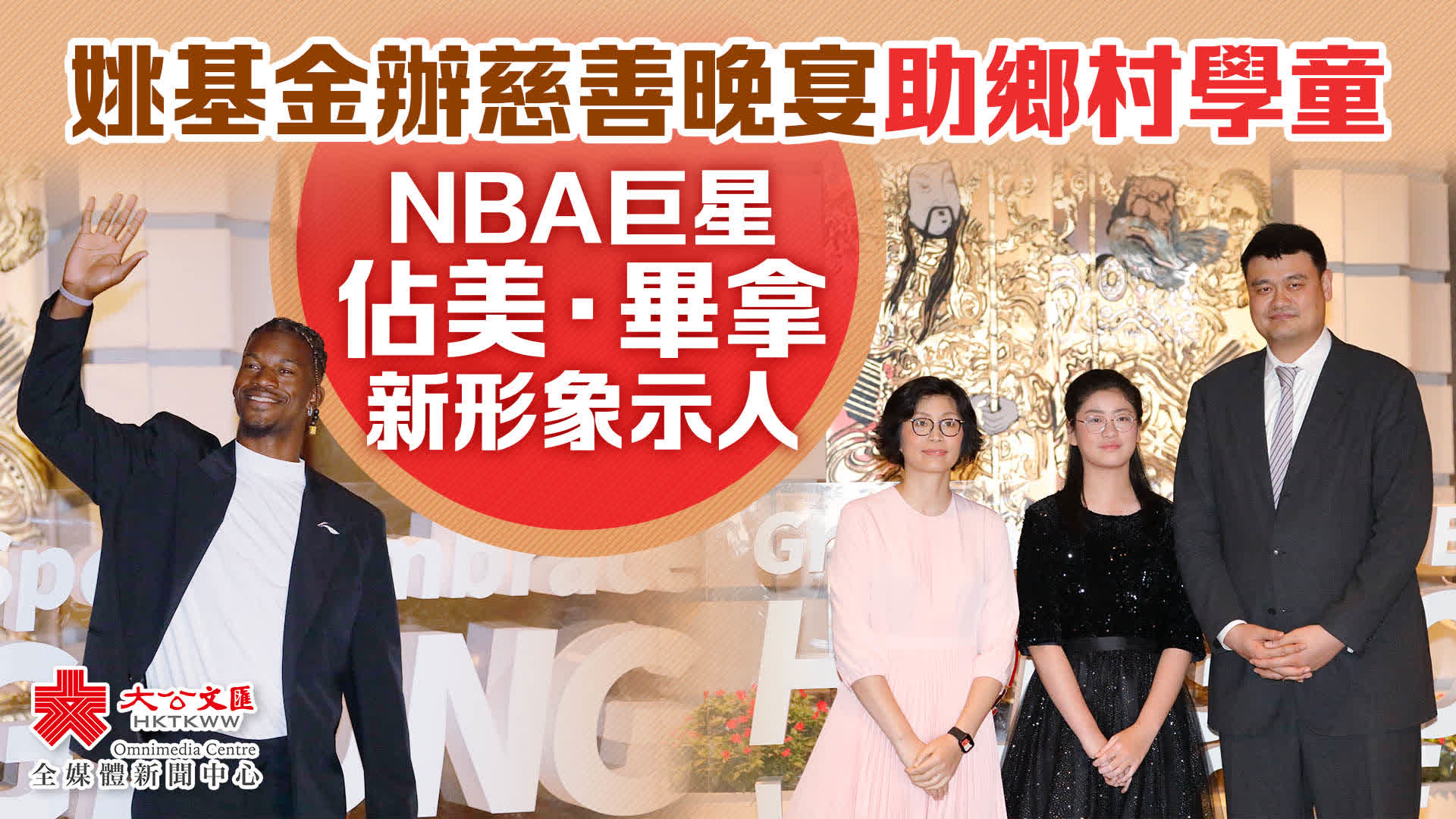 (大公文匯全媒體 記者 王俊傑)姚基金今晚(19日)舉辦慈善晚宴,為姚基金和中國青少年發展基金會攜手在內地30個省份開展的「姚基金希望小學籃球季」公益項目募集善款。多名中外籃球巨星均有出席,包括佔美·畢拿(Jimmy Butler)、保羅·佐治(Paul George)、姚明、葉莉、郭艾倫等人,當中佔美·畢拿更加以辮子頭新形象出席公開活動。