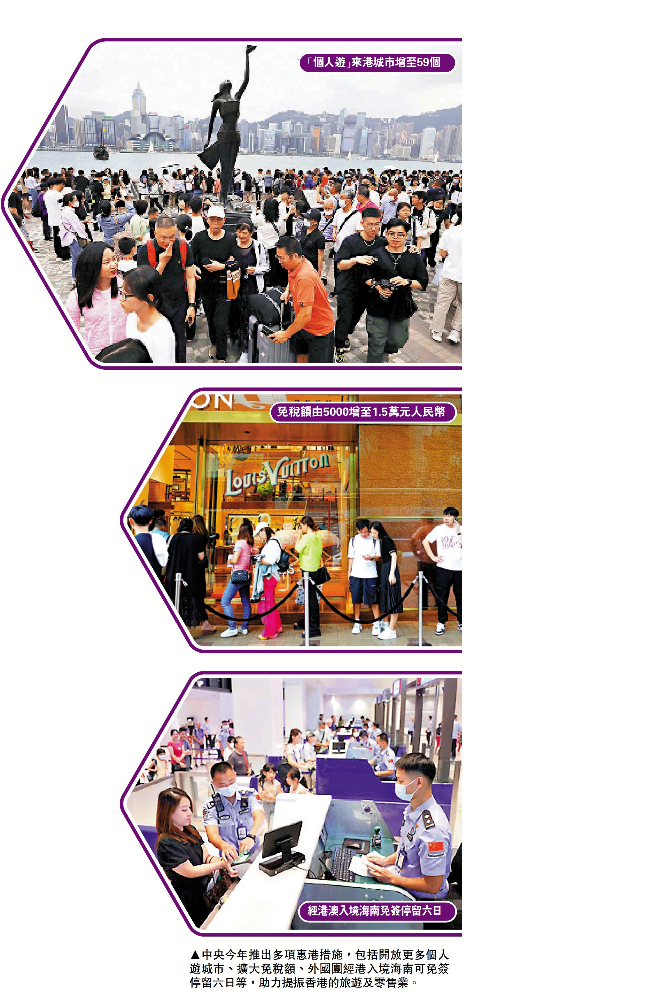 此外,由7月30日起,港澳地區外國旅遊團,經港澳入境海南可以免簽停留六日,新政策有助香港建立一程多站旅遊模式,吸引新加坡等東南亞旅客先訪港再訪海南。