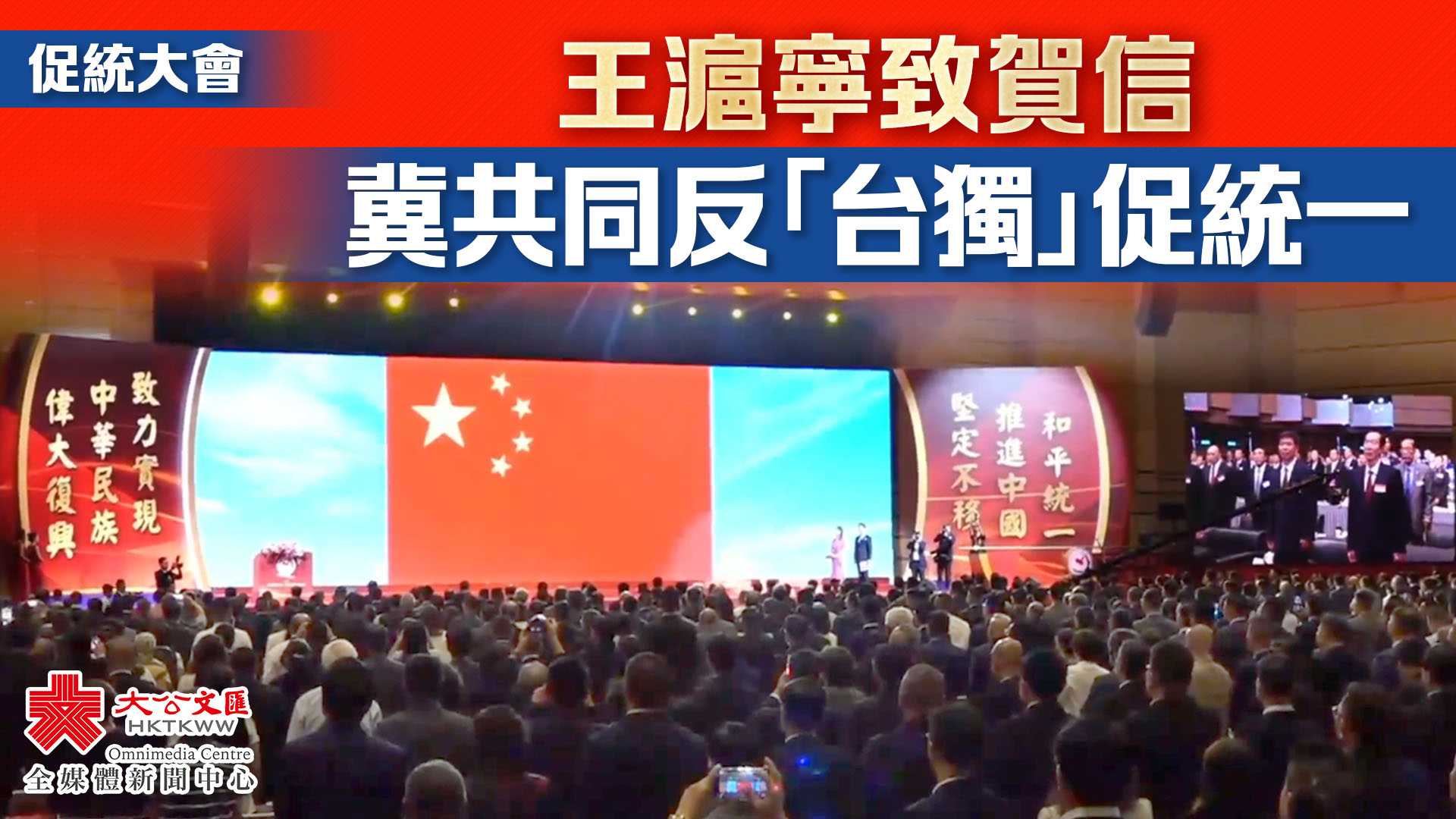 王滬寧表示,長期以來,廣大港澳台同胞和海外僑胞秉持民族大義,踴躍投身反「獨」促統運動,為促進兩岸各領域交流融合、增進國際社會堅持一個中國、推進祖國和平統一進程做出了積極貢獻。希望海內外統促會組織和各界愛國友好人士以此次大會為契機,廣泛凝聚共識、凝聚智慧、凝聚力量,為港澳台海外反「獨」促統運動發展注入新動能。