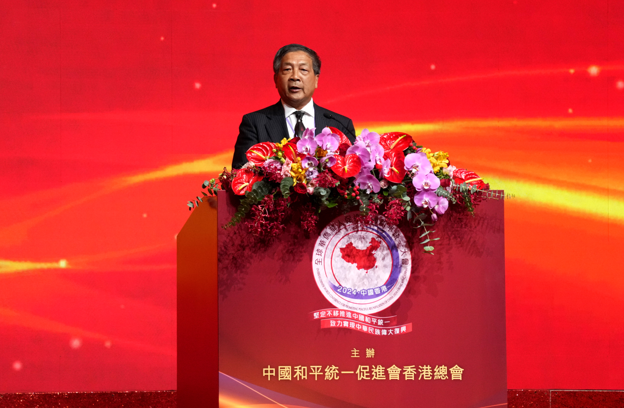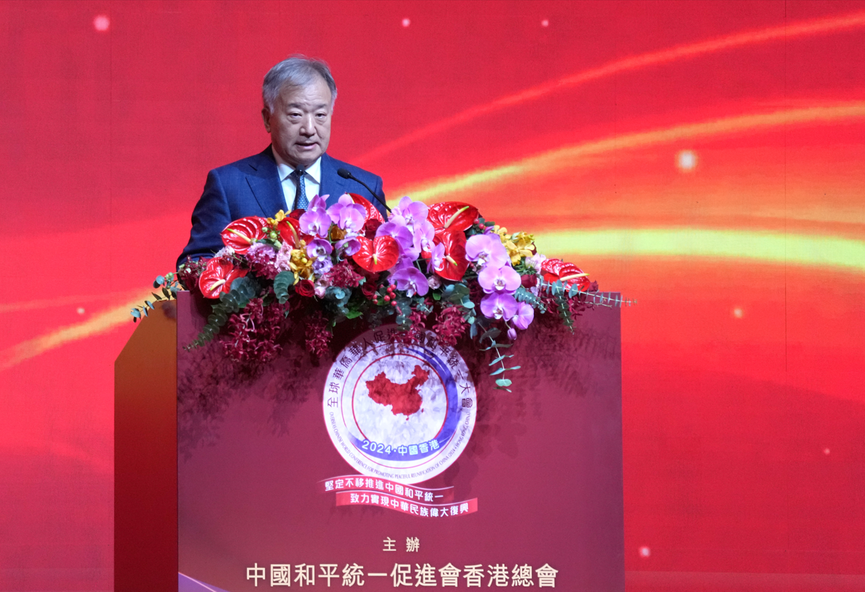 泰國中國和平統一促進總會會長王志民則派代表發言,重申「要和平、要發展、要交流、要合作」才符合兩岸民眾利益。今天在香港舉辦促統大會,正好展示「一國兩制」的輝煌成就,只要包括台灣同胞在內的中華同胞同心,就能粉粹「台獨」和外來干預勢力的圖謀。