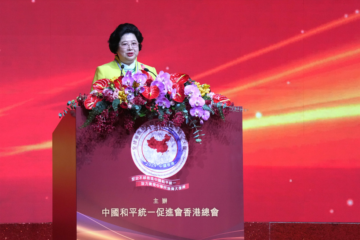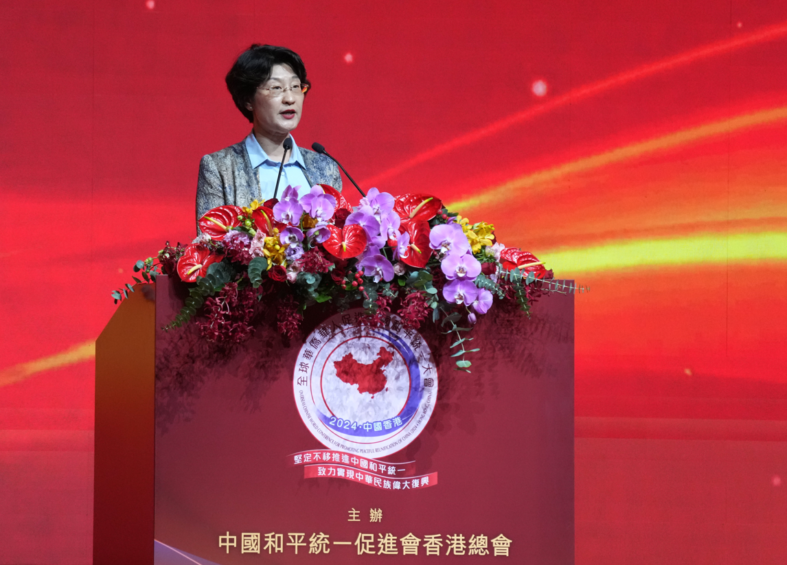 歐洲中國和平統一促進會常務副主席曹燕靈表示,今年是中華人民共和國成立75周年,亦是香港特別行政區成立27周年,促統大會此時此刻在香港舉辦,意義非凡。她強調,台灣只有回家,才能看到比現在更加燦爛美好的未來。她又引述國家主席習近平的重要講話,「祖國必須統一,也必然統一」,無論付出多大的努力,都必須把台灣帶回家。