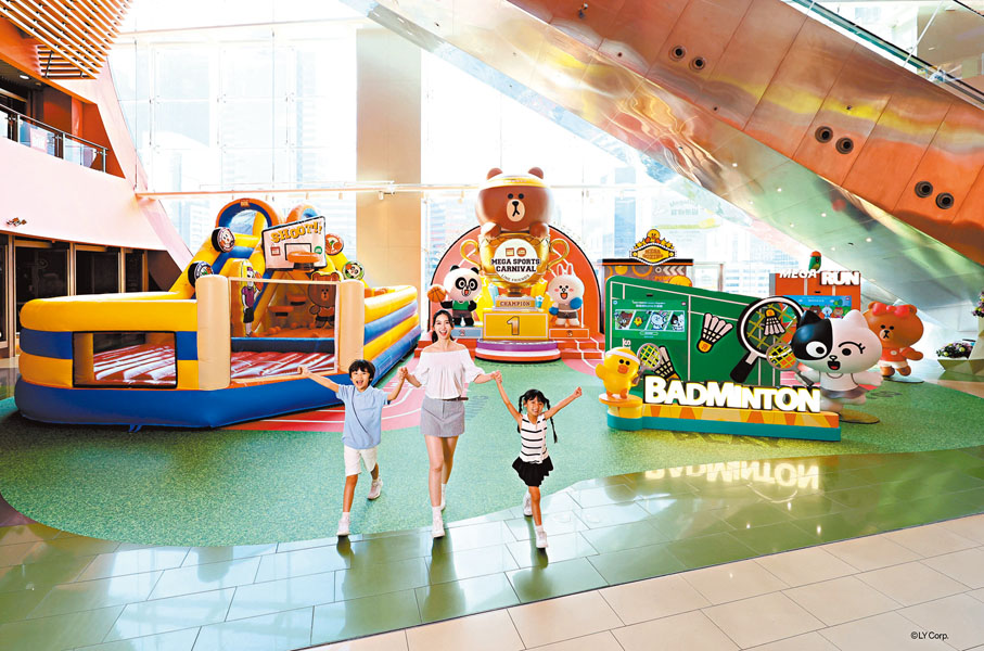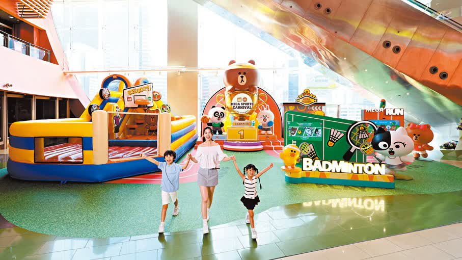 (香港文匯報記者 雨文)四年一度的體壇盛事雖已收官,一股充滿運動狂熱的氛圍仍繼續圍繞着各大商場。筆者發現,不少商場聯乘人氣卡通及動漫角色,如LINE FRIENDS、罐頭豬LuLu、Kakao Friends、KUROMI、麥兜等,有的更以運動造型示人,切合大熱主題,吸引粉絲打卡。同時,有商場設充氣裝置打造成彈跳樂園,或融入運動主題的玩樂關卡或體感遊戲,讓忠實粉絲既可盡情玩樂,又可與心愛卡通打卡,度過活力四射的開心暑假!