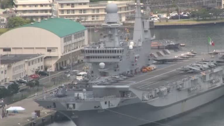 據央視新聞報道,當地時間8月22日,意大利「加富爾」號航母首次停靠日本。