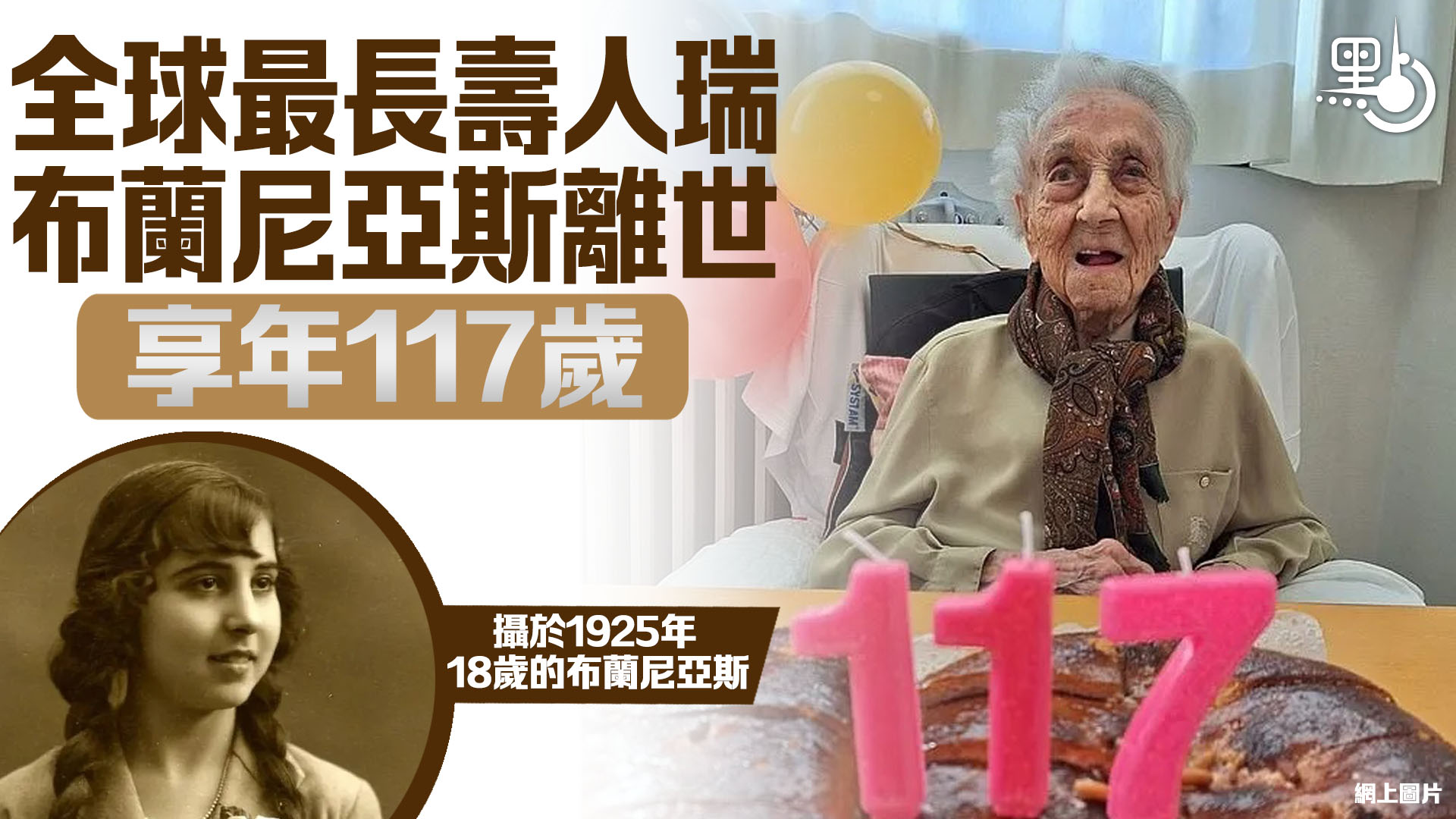 大公文匯全媒體報道,歷經兩次世界大戰,戰勝新冠肺炎,獲健力士世界紀錄認證的全球最長壽老人,居於西班牙加泰羅尼亞的女子布蘭尼亞斯,日前在睡夢中安詳辭世,享年117歲。