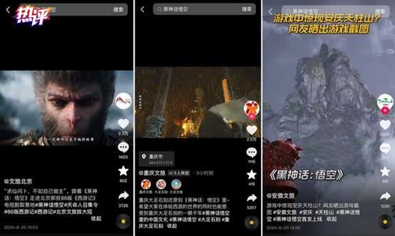 8月20日,國產遊戲《黑神話:悟空》正式發售,在多個平台登頂銷量榜首,更在美國、新加坡、泰國、加拿大、巴西等12個國家霸榜。某平台當日全球同時在線人數突破220萬,超越多個世界知名3A大作的記錄,成為該平台歷史同時在線玩家人數最多的單機遊戲。國內各大社交媒體上,相關討論也層出不窮,山西、重慶、浙江等地文旅賬號紛紛上線「悟空」大片,邀請各位玩家來取景地「取經」。