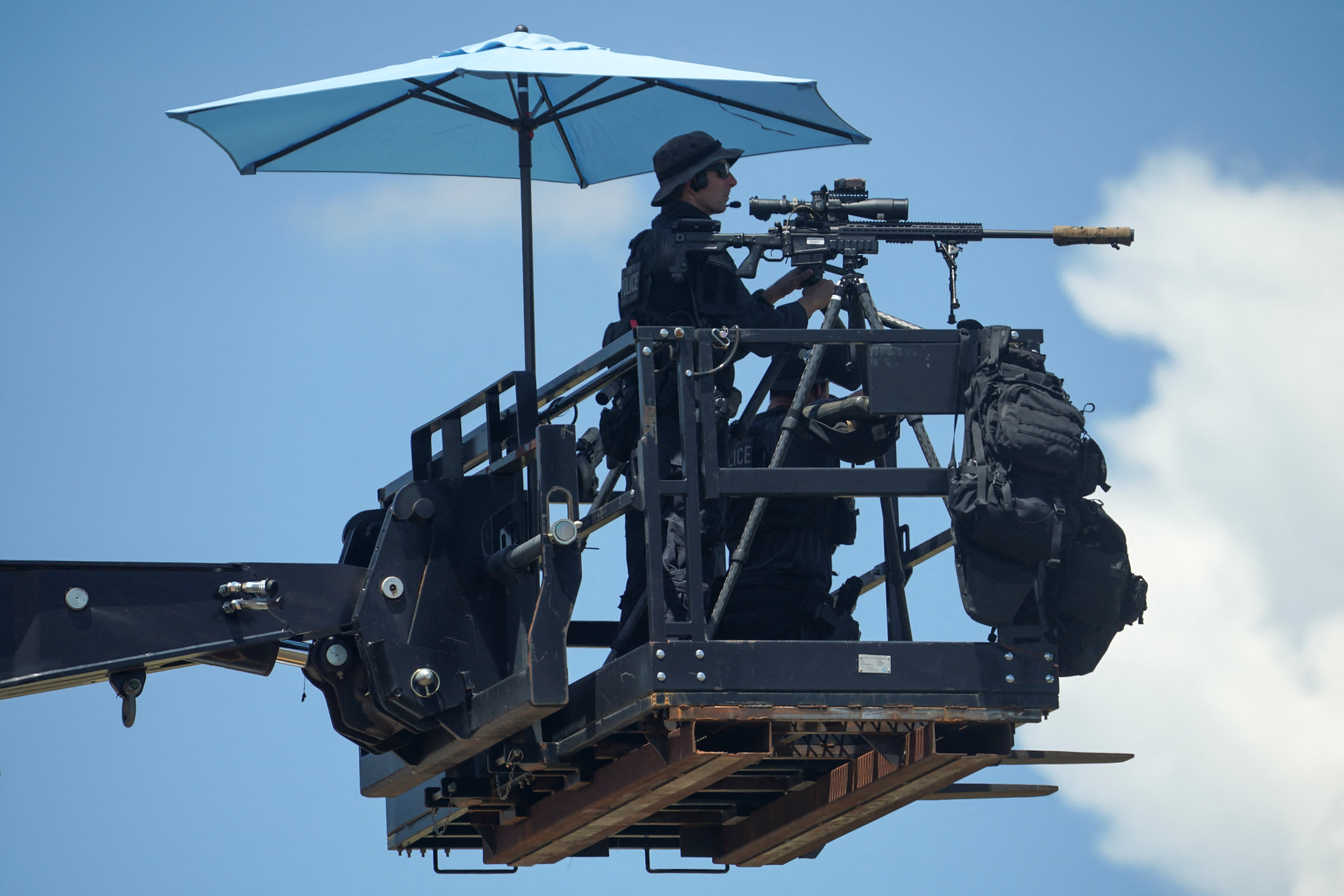 特朗普聲稱,如果哈里斯在11月美國大選中獲勝,數以百萬計的工作崗位將「一夜之間消失」,美國民眾的畢生積蓄也將被清空。他還說,當自己擔任美國總統時,世界各地的對手都知道美國不好惹;如果哈里斯勝選,第三次世界大戰「幾乎肯定會發生」。據美媒報道,特朗普的講台被防彈玻璃包圍;場地周邊堆放貨櫃,形成額外的屏障並遮擋視線;附近屋頂上有執法部門的狙擊手待命。一個月前,他在賓夕法尼亞州參加戶外集會時遭槍擊,右耳受傷。
