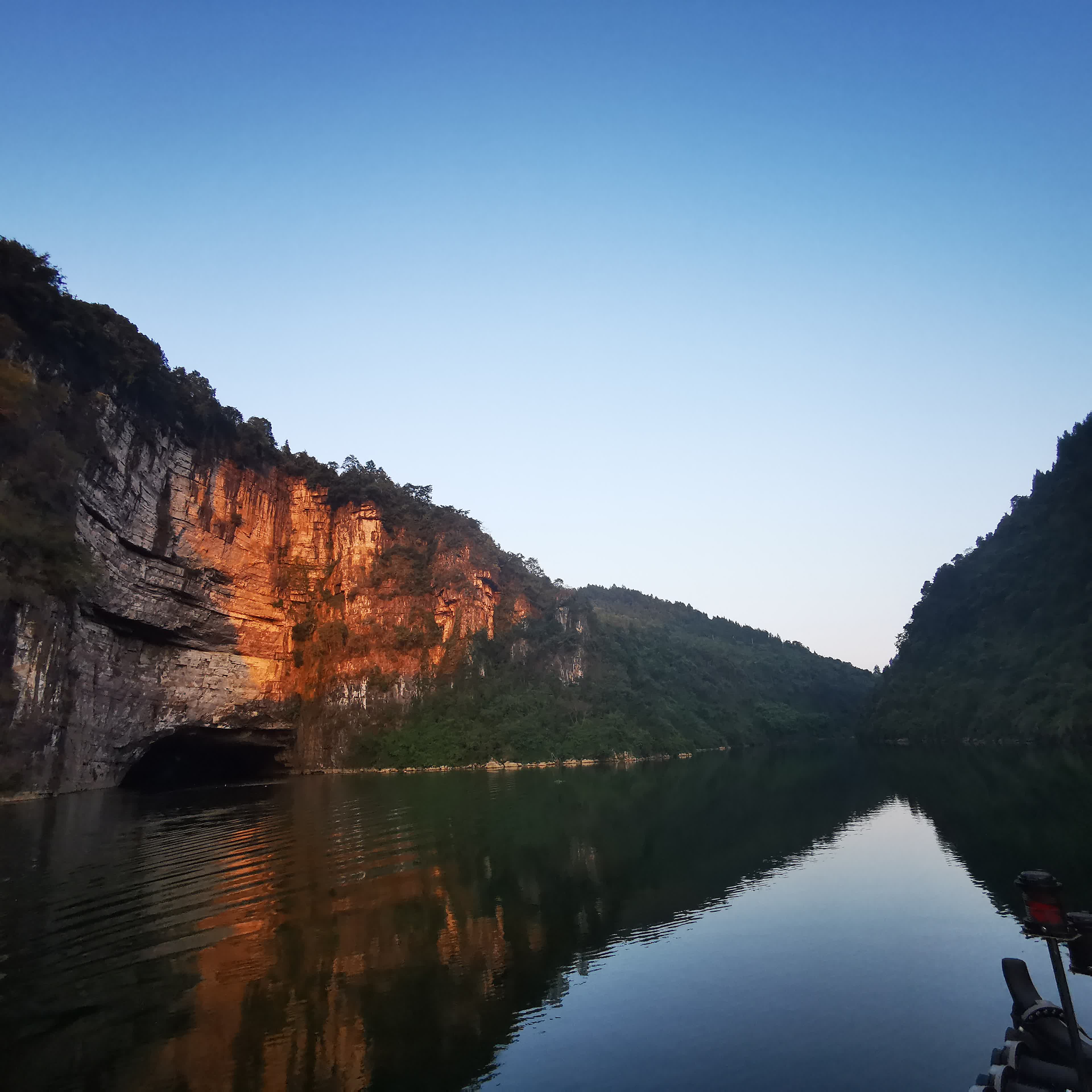 青山蒼茫鳥唱歌,綠水銀濤魚起舞。蕩舟在卯洞峽酉水河上,猶如置身錦綉如畫的仙境之中。沿河兩岸的石峰、溶洞密布,宛如十里畫廊。嚮導介紹,上世紀80年代內地大熱的《烏龍山剿匪記》就是在這裏拍攝的。
