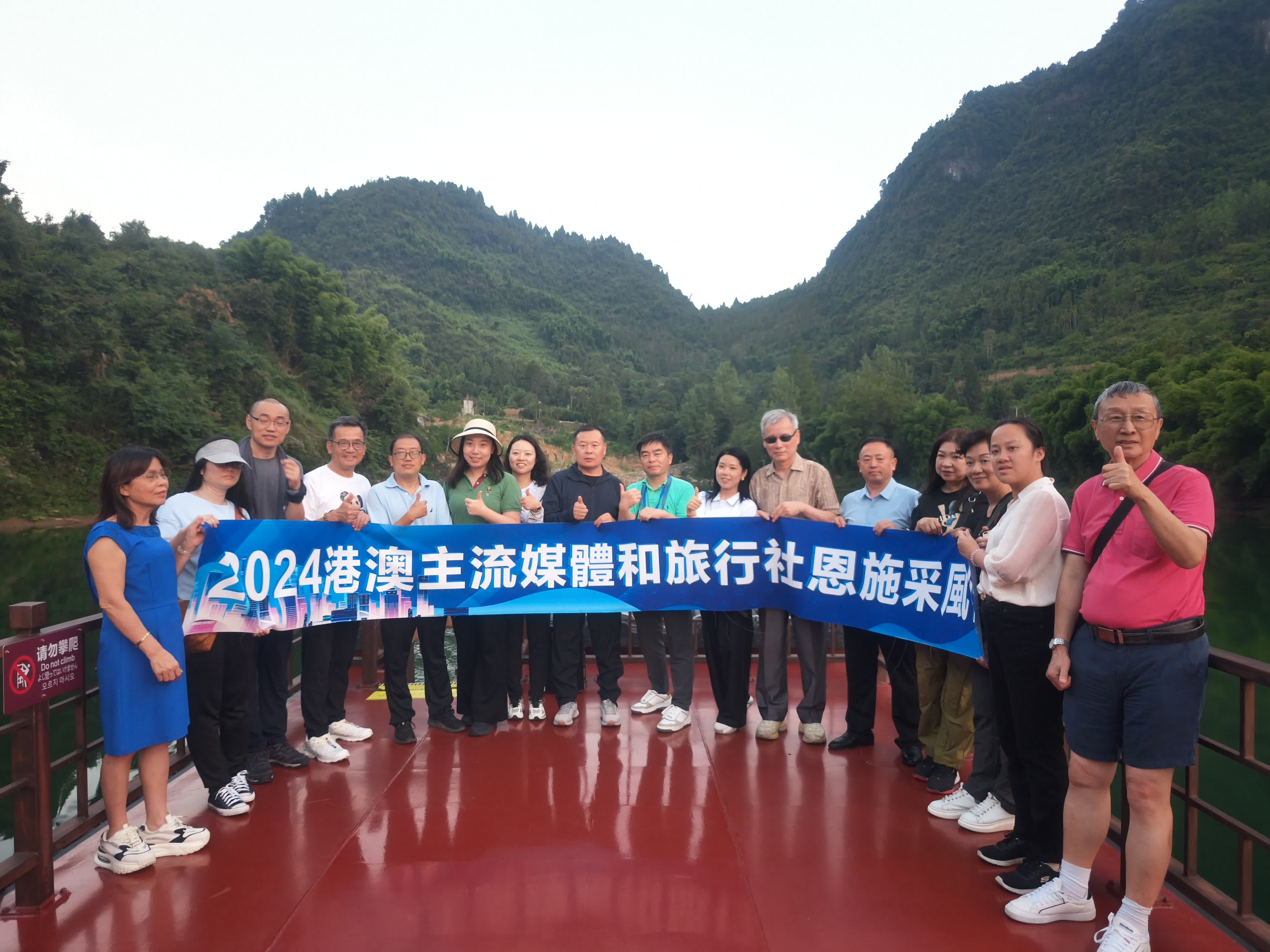 (大公文匯網記者歐陽思柔 來鳳報道)「哇,看到這樣的山水,這三四個小時的奔波就值得了!」當船頭劃開碧波,融入恩施州來鳳縣酉水河上的卯洞時,「2024粵港澳主流媒體和旅行社恩施行」採風團成員李先生由衷感歎。