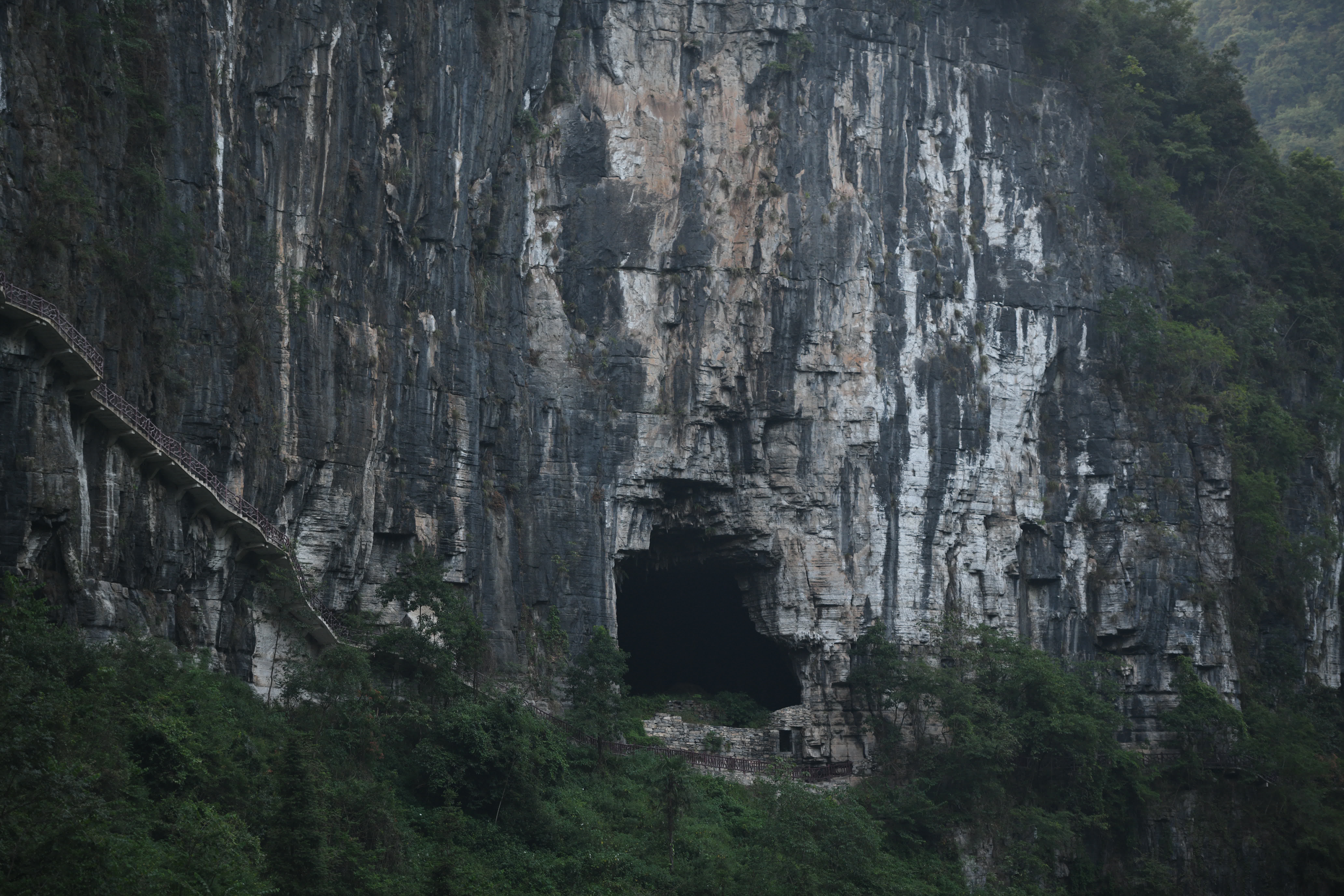 船行至最為奇美的卯洞前,只見兩三百米高的石崖將河道隔斷,只留一個寬約數十米的洞口,讓酉水河可以穿過。卯洞洞頂距離河面僅30餘米,開口說話回音繞耳,岩燕成群飛過身邊,置身洞中,有種穿越回洪荒的奇妙錯覺。穿過卯洞,河道立刻變寬數倍,豁然開朗,滿目蒼翠,清風撲面,陽光灑落,心曠神怡,喜樂洋洋。