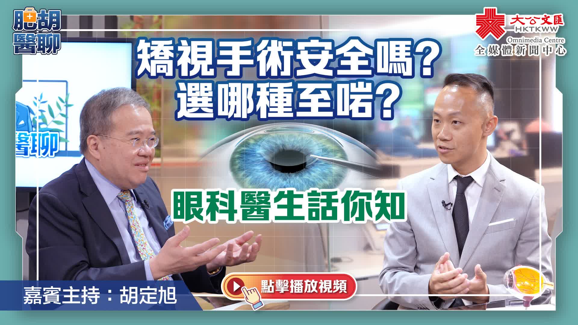 大公文匯全媒體報道,近視眼正逐漸成為常見「都市病」,各類眼部疾病的風險亦與日俱增。繼上集《肥胡醫聊》邀請眼科專科醫生許用藍,揭秘日常用眼妙招及破除護眼迷思,如手機、電腦、電視哪個最不傷眼,防藍光膜是否「智商稅」等,本集繼續探討眼睛那些事,詳解目前主流矯視手術的區別,並回應矯視手術是否安全、術後會否影響正常生活、有沒有什麼不良反應等市民關心的話題。