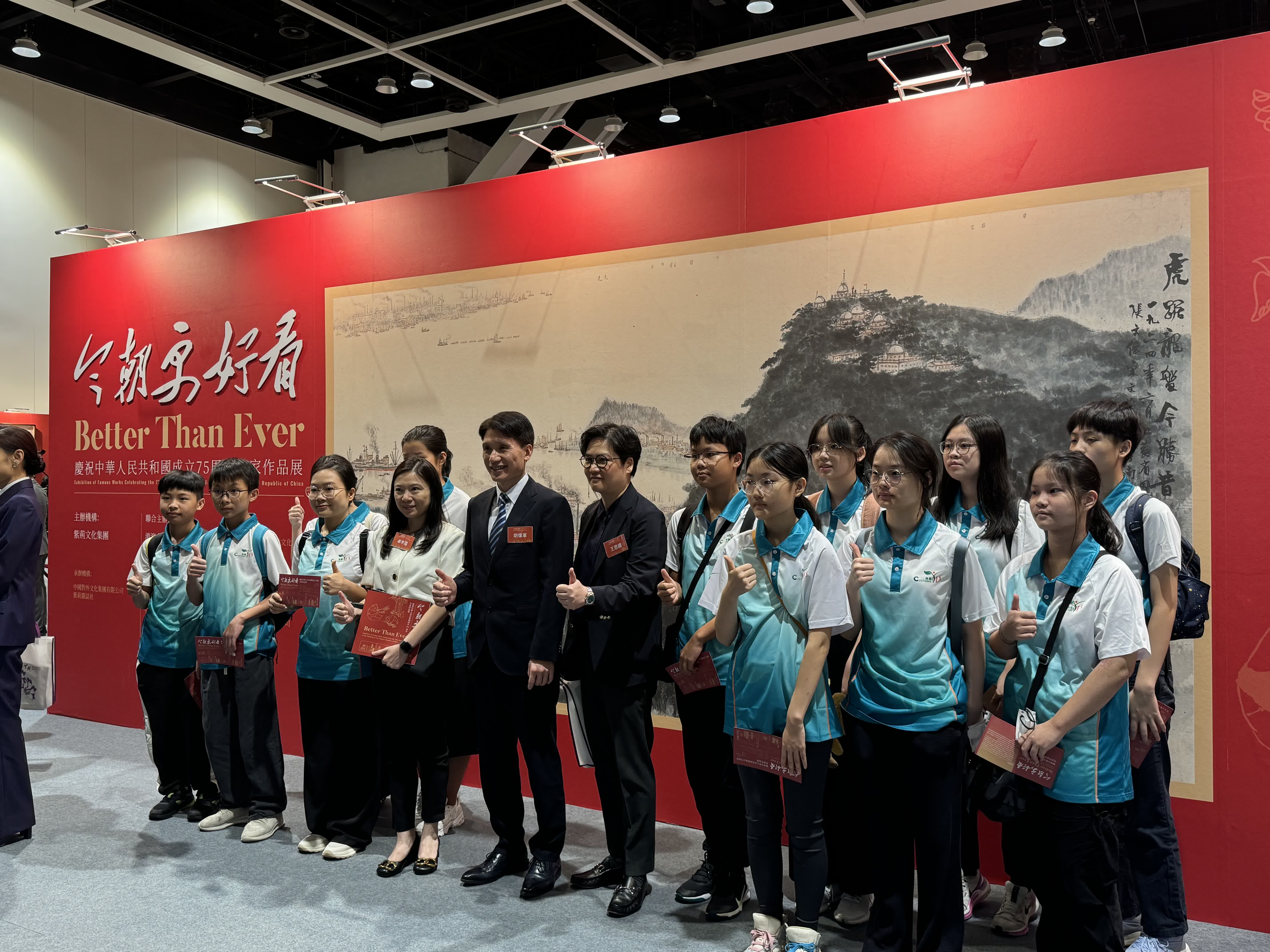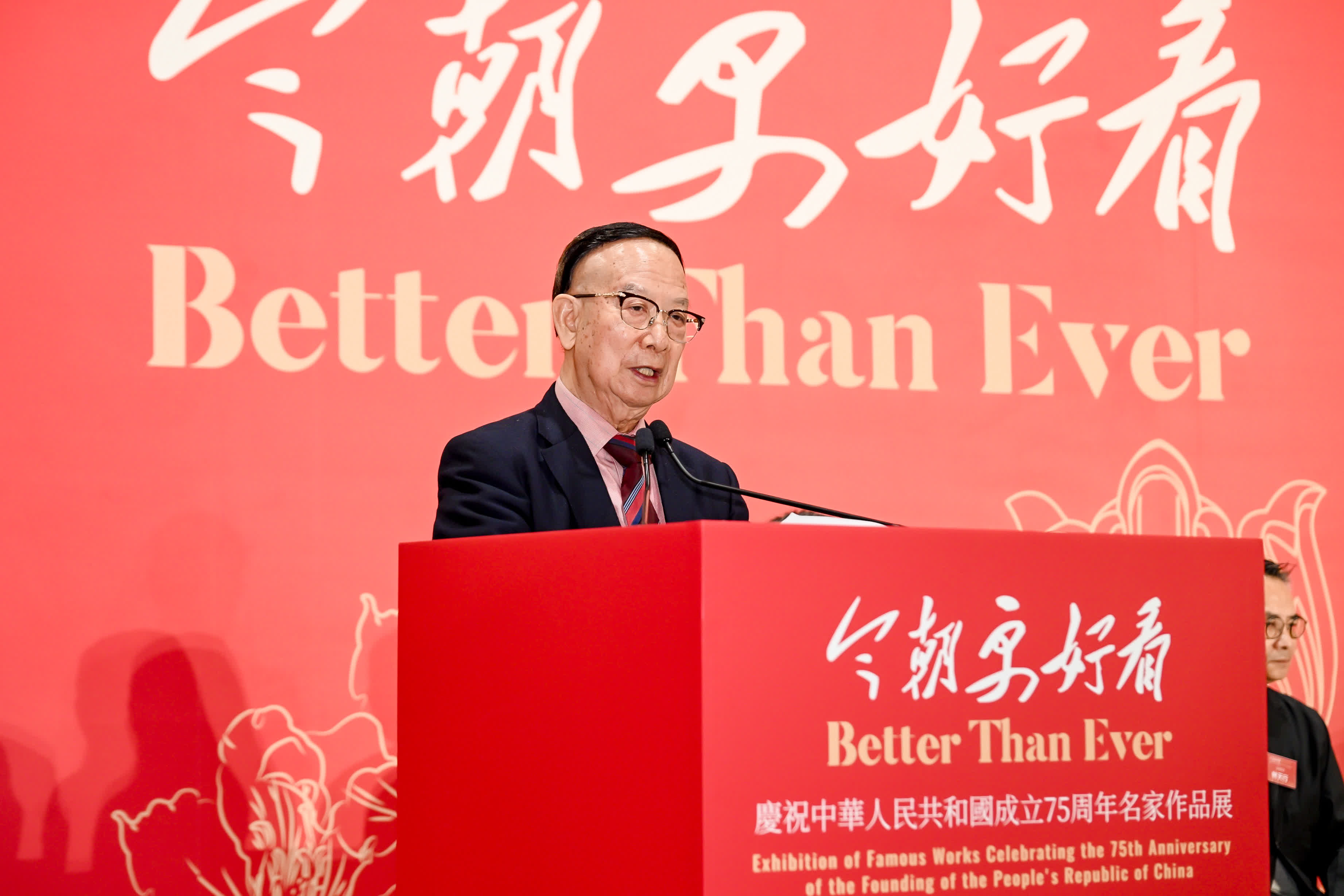 (大公報 記者 顏琨、實習記者 郭悅盈)為慶祝中華人民共和國成立75周年,「今朝更好看──慶祝中華人民共和國75周年名家作品展」今日在香港會展中心舉辦開幕典禮。香港特區行政長官李家超為本次展覽題辭「筆精墨妙,國盛民強」。是次展覽展出120餘幅作品,其中來自內地的100幅典藏精品多是出自齊白石、徐悲鴻、李可染、傅抱石、吳冠中等中國近現代著名書畫家之筆,很多作品是經國家文物局特別批准後首次來港展出;另外20餘幅作品為港澳地區當代知名藝術家饒宗頤、林天行、蔡豪傑等人所作。