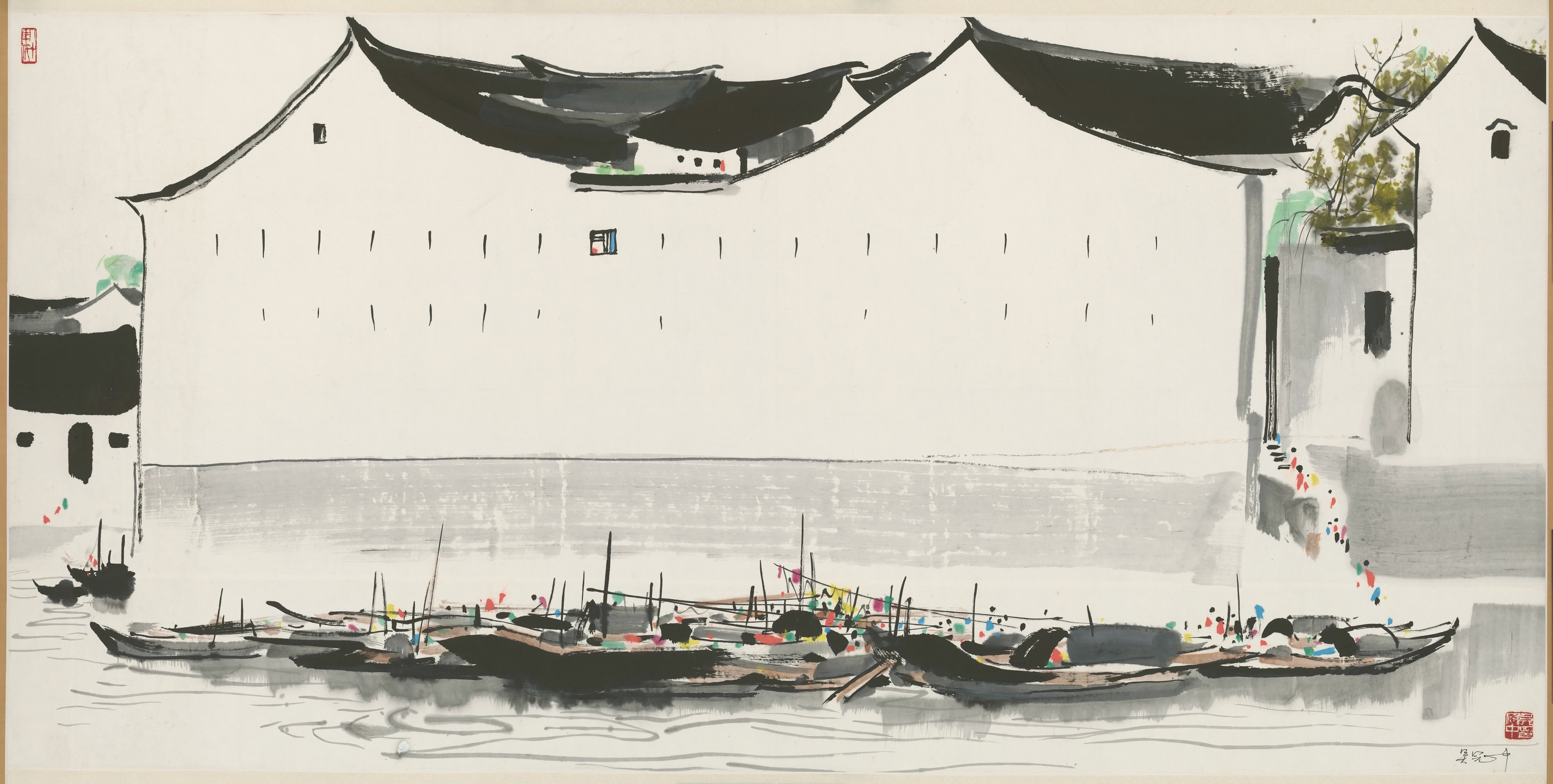 現場展出的多幅名家名畫,吸引參觀者駐足欣賞,有表現齊白石與徐悲鴻知己感情合作的《梅竹》,吳冠中典型藝術面貌的《江南水鄉》,李可染著名的山水作品《灕江雨》、江南寫生的代表作《鑒湖》,傅抱石等人合作的《虎踞龍盤今勝昔》,極具潘天壽風格的《雁蕩山花》,關山月《新開發的公路》,饒宗頤的《山水》,蔡豪傑的《梅松頌》等作品。