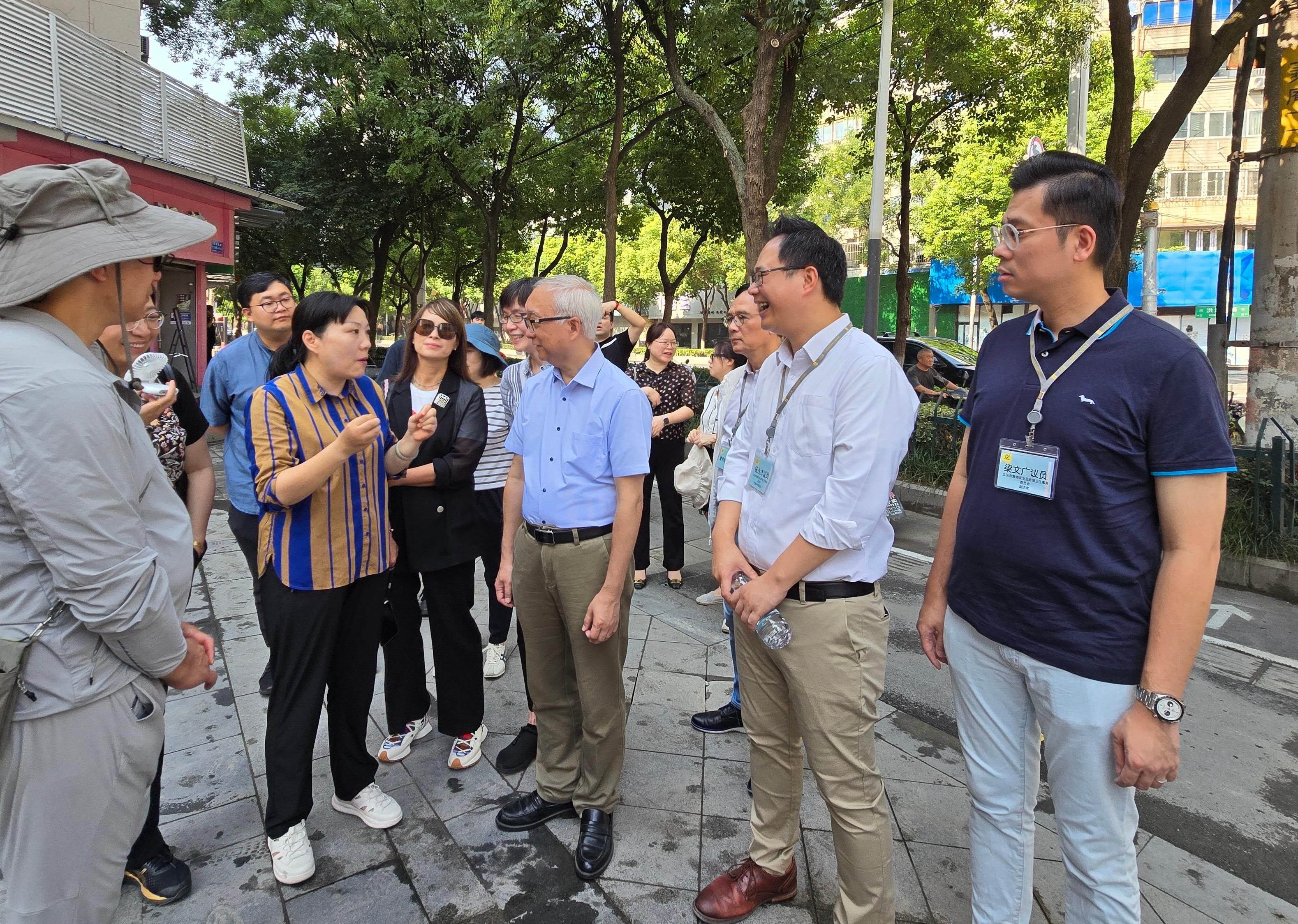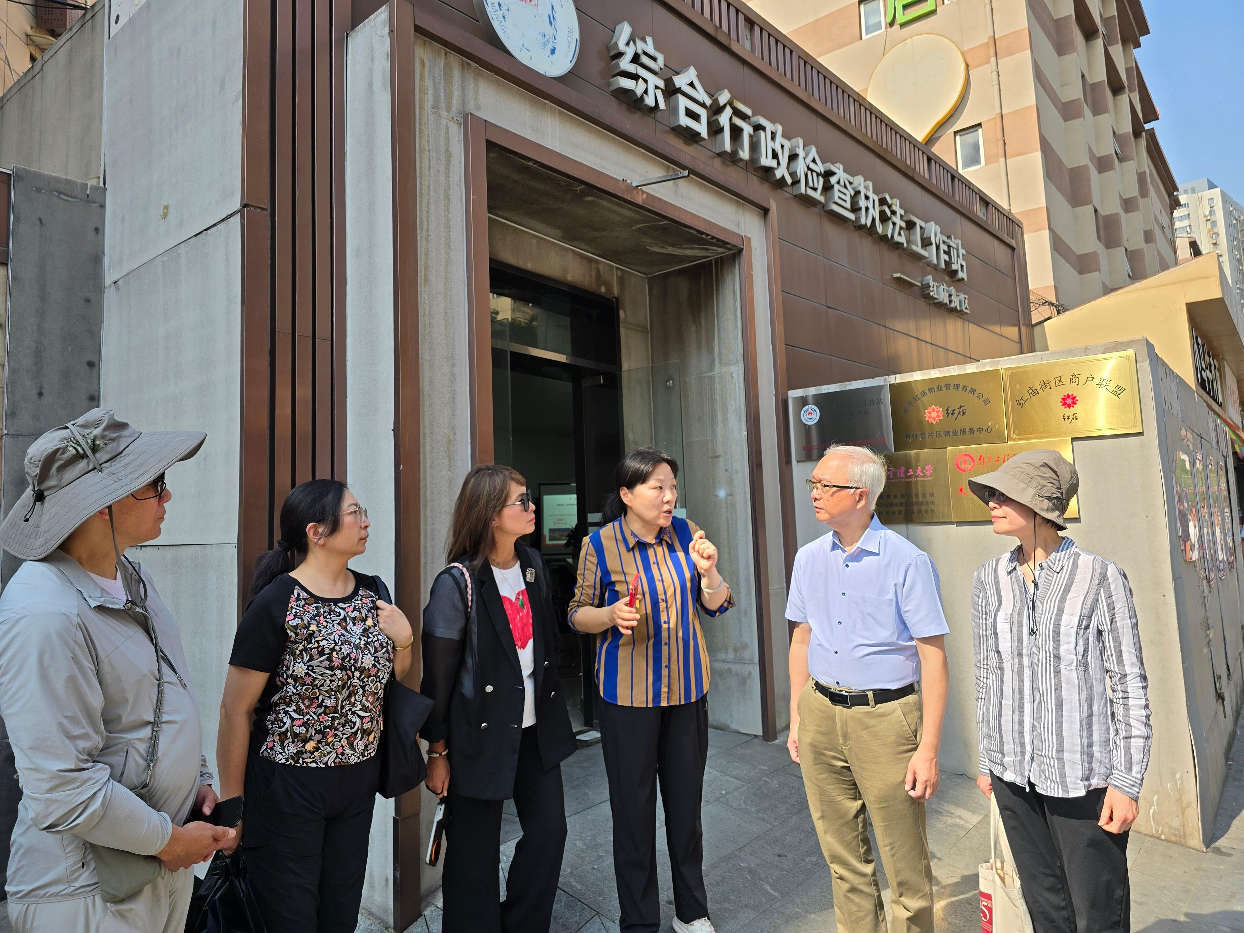 訪問團早上參訪南京玄武區紅廟街區,了解城市管理綜合行政執法總隊如何以創新管理思路,聯合物業管理和環境衞生人員等實行「管環執聯動」的街區一體化治理新模式,從源頭處理佔道經營、亂堆亂放以及垃圾不分類等違規行為。