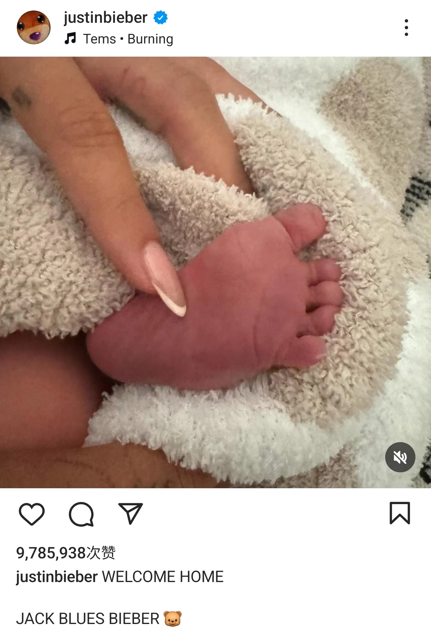 大公文匯全媒體報道,8月24日,加拿大流行歌手賈斯汀·比伯(Justin Bieber)發文宣布他和海莉(Hailey)的兒子出生,取名Jack Blues Bieber。賈斯汀在個人社交平台上曬出了妻子海莉和兒子小腳丫的照片,並寫下「歡迎回家」。