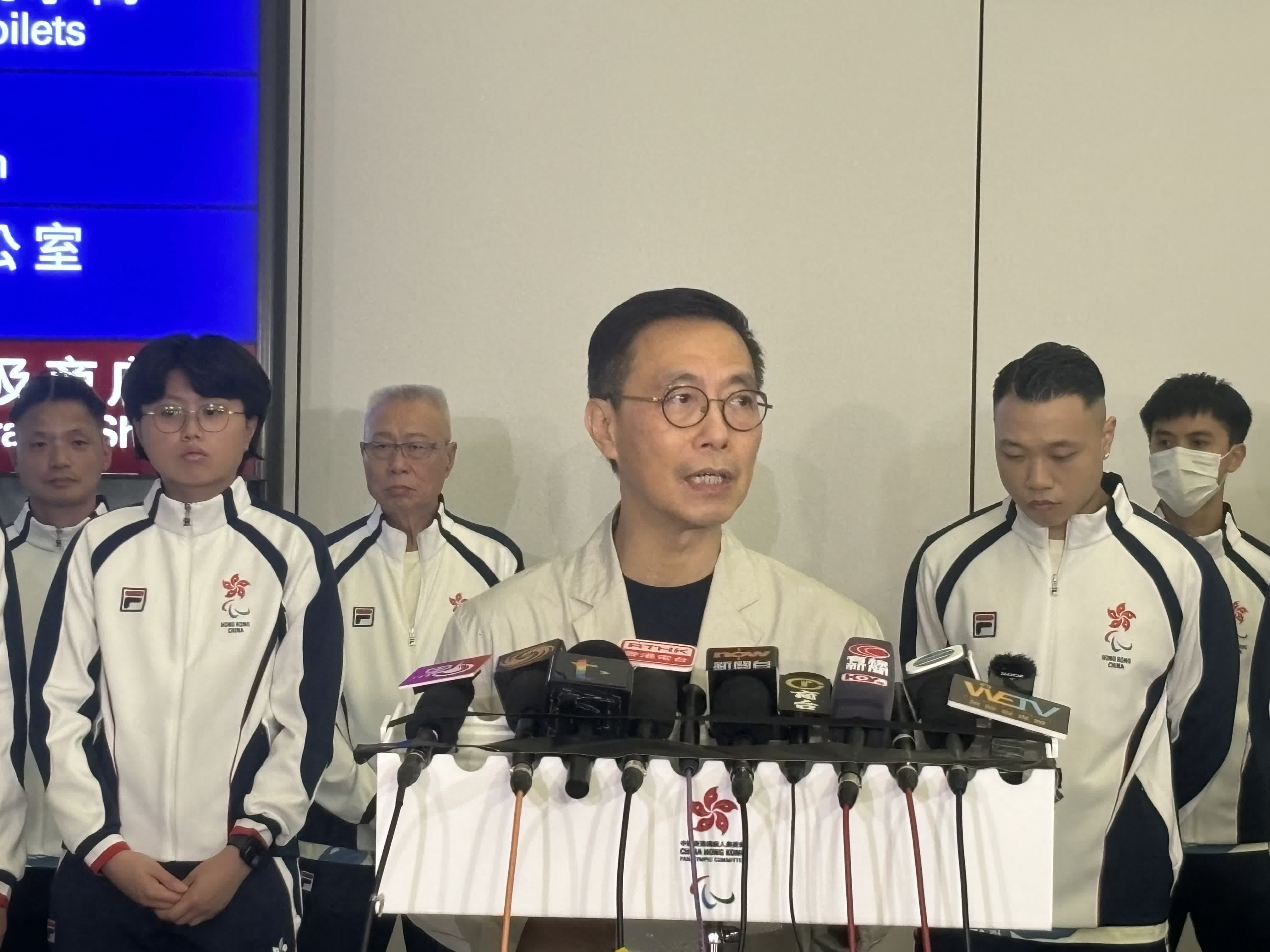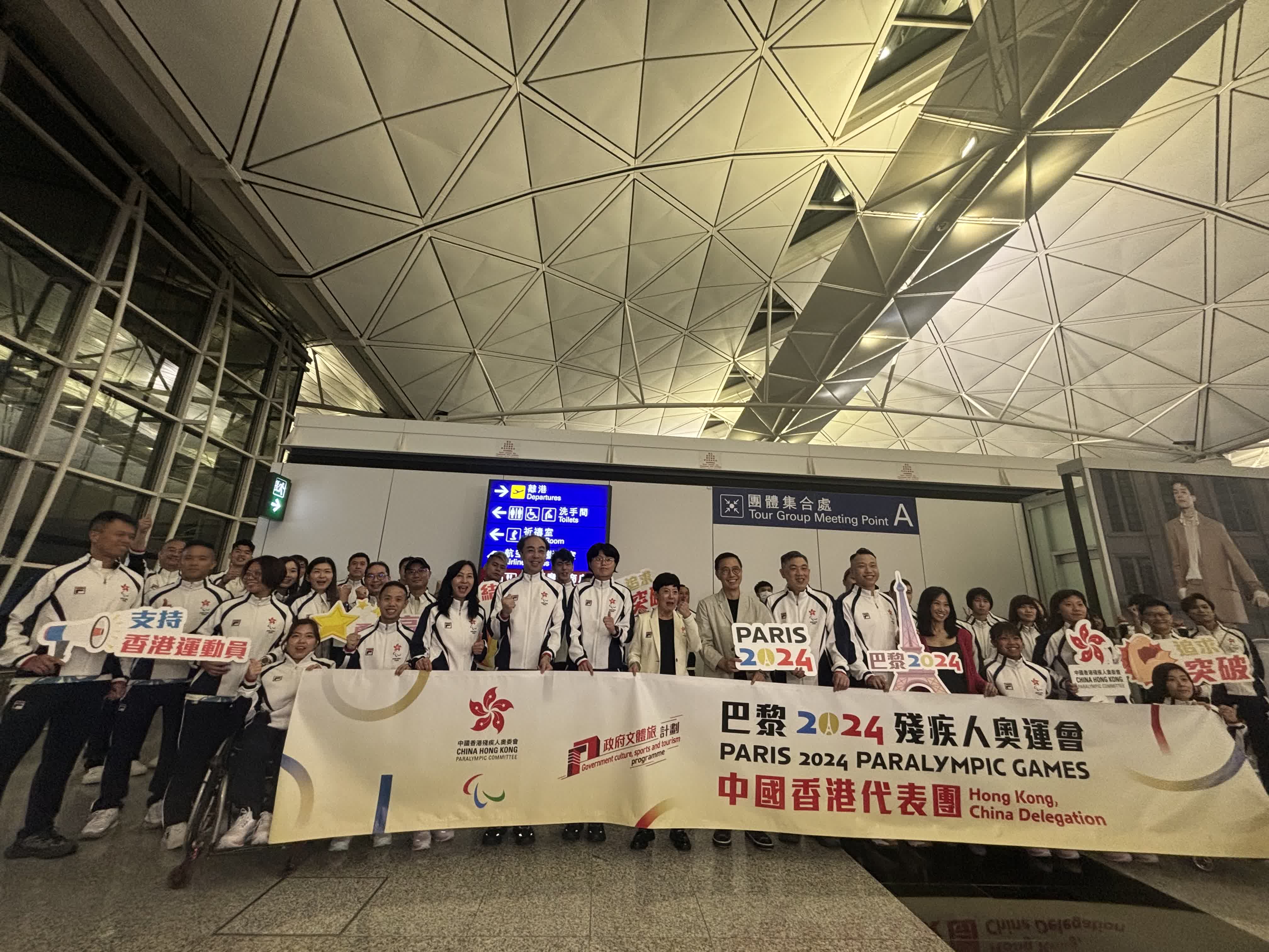 文化體育及旅遊局局長楊潤雄到場為港隊運動員打氣。他表示,眾所周知,4年一度的殘奧會也是一場十分重要同時也是高水準的比賽。本次派出23位運動員代表香港出戰,也反映了香港從政府到個團隊一直以來在培育運動員方面所做出的努力。楊潤雄希望出戰的運動員在接下來這段日子好好享受這個國際舞台,盡情與世界各地選手競爭,爭取獲得好成績。同時,他也希望接下來可以抽時間再一次到巴黎親身支持運動員。他還提到特區政府已購入殘奧會轉播權,市民在香港也可以看到運動員的精彩比賽,為他們打氣。