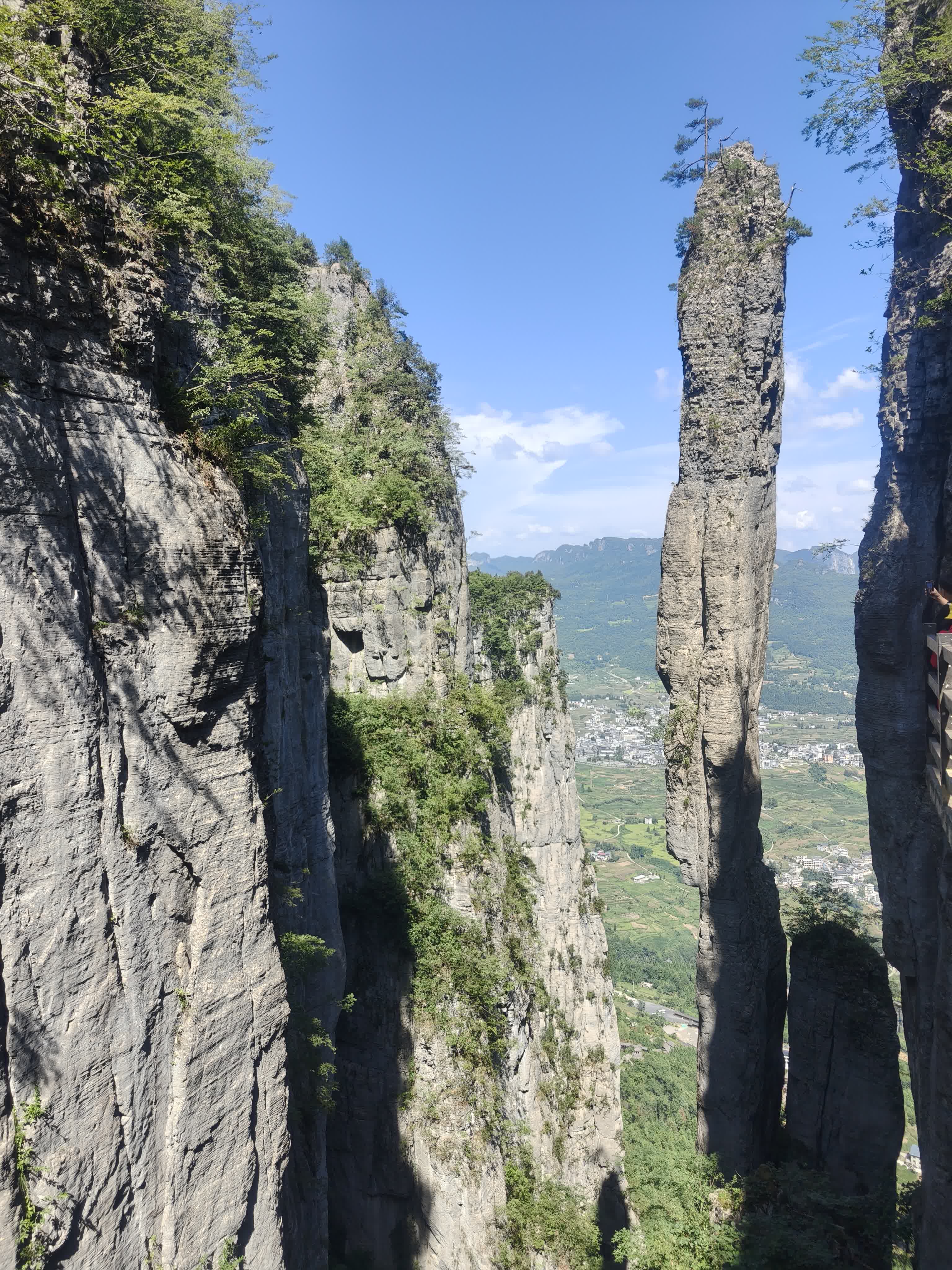 與雲龍地縫相比,七星寨的景色也不遑多讓。這裏不僅有地縫、絕壁,還有峰叢、岩柱群等地質景觀,仿佛一座天然的喀斯特地形地貌博物館。沿途的「迎客松」「一炷香」等著名景點也帶給採風團成員們深深的震撼,它們或挺拔如松,或形態奇特,讓人不禁感嘆大自然的神奇。