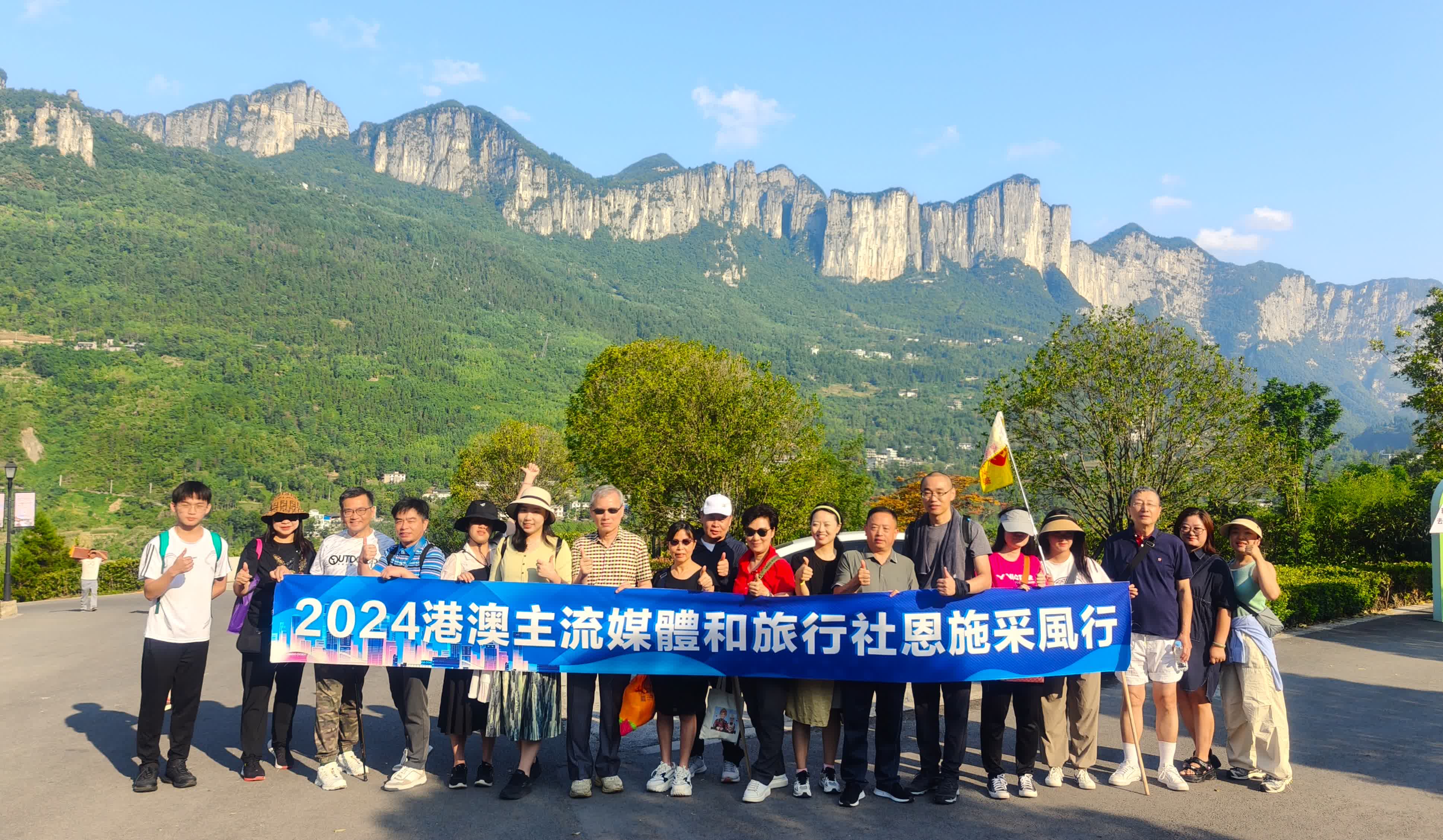 (大公文匯網記者歐陽思柔 恩施報道)8月24日,由7家港澳主流媒體、6家港澳旅行社組成的「2024港澳主流媒體和旅行社恩施行」採風團走進世界地質公園——恩施大峽谷,感受濃郁民俗風情,領略峽谷自然風光。