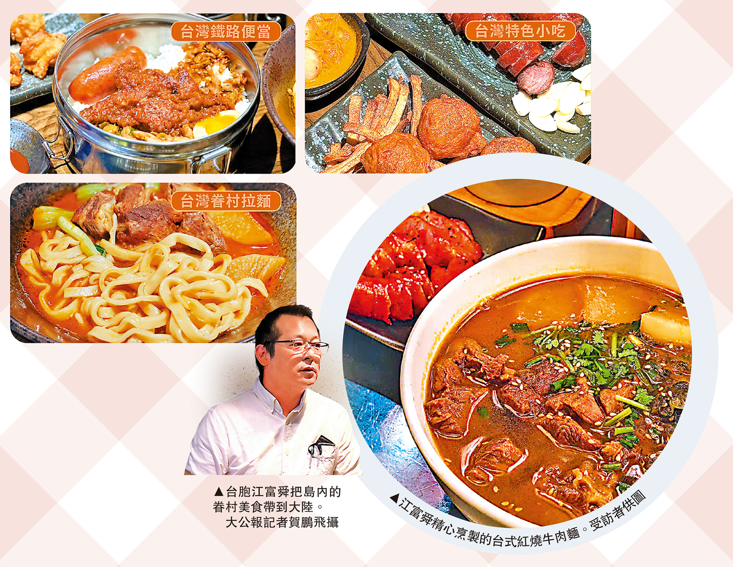 (大公報 記者 賀鵬飛 昆山報道)在台商台胞聚集的江蘇昆山,有一家主打台灣美食的網紅餐廳,開業將近20年,每到飯點都吸引很多台商台胞和本地市民前來「打卡」。它是台灣「眷村三代」江富舜創立的餐飲品牌。十幾年來,江富舜致力於還原記憶中的眷村味道,既讓大陸同胞品嘗到原汁原味的眷村美食,也讓身在大陸打拚的台灣同胞一解舌尖上的鄉愁。