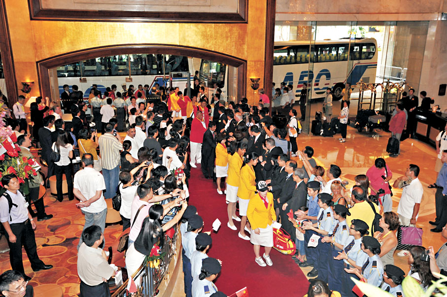對於酒店能夠接待內地奧運健兒代表團,黃英豪、莊俊文在接受訪問時都難掩喜悅心情:「非常高興有機會第五次贊助和接待內地奧運健兒,我們已經預留加強了保安的兩層樓層、合共90多個房間。全體員工也非常興奮,許多人都主動放棄休假。對於奧運健兒在酒店內的餐飲、住宿、活動的每個環節,我們也都做了精心安排和準備,確保萬無一失。」