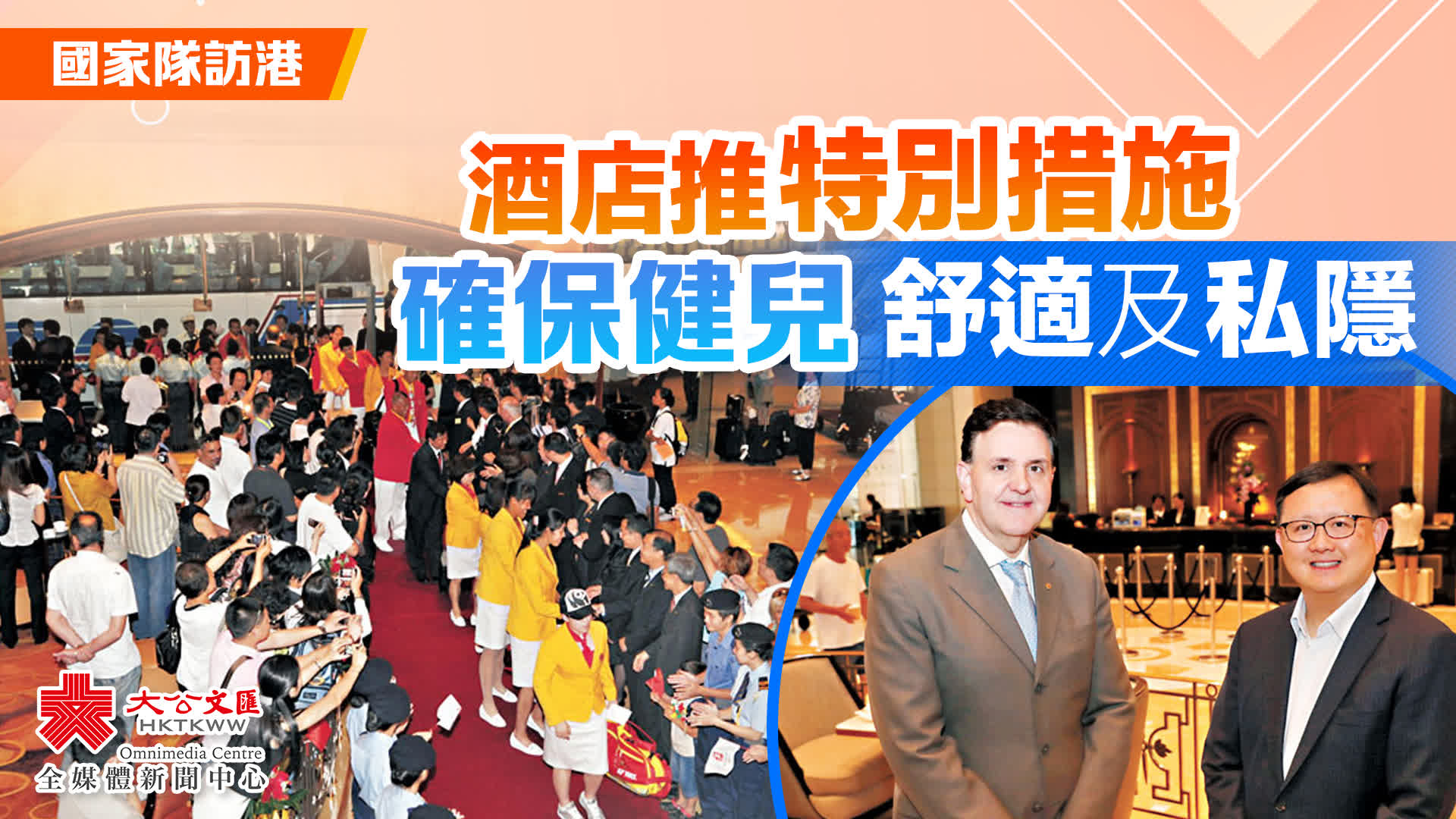 他介紹,安全方面,酒店將對其他進出的客人和物件進行安全檢查,代表團專用的樓層將派專人值守,其他客人和非工作人員均不能進入;單獨劃出1樓的餐廳供代表團專用,餐廳配置中西名菜外,還安排具有香港特色的菜式。舒適方面,酒店已對房間進行了全面的檢修和調整,特別配置大床,讓身材高大的運動員也能安睡。