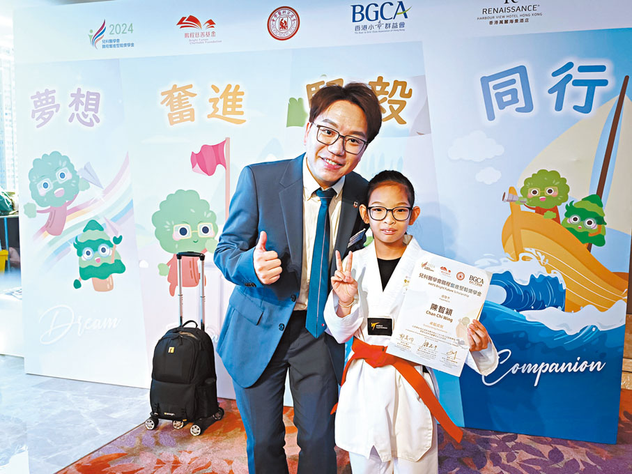 (香港文匯報 記者 陸雅楠)為鼓勵具有特殊才能卻受限於經濟、長期疾病及特殊學習需求的兒童和青少年勇敢追夢,香港兒科醫學會構思、鵬程慈善基金贊助,聯同香港小童群益會共同籌劃及推行兒科醫學會鵬程奮進堅毅獎學金2024,每名得獎學生最高可獲2萬元支持學習。昨日舉行的頒獎典禮上,共有190名優秀中、小學生獲頒獎學金。其中,剛於今年世界青少年劍擊錦標賽摘銅的香港男子花劍代表陸浚諾是其中之一,從小患有一型糖尿病的他,深深感受到醫生對病患的重要性,期望將來能夠從醫,幫助他人。另有成長於基層家庭的小學女生,年幼時被診斷有專注力不足,母親讓她通過大量運動提升專注力,她亦憑着對跆拳道的熱愛,於多項國家及本港賽事中取得佳績。