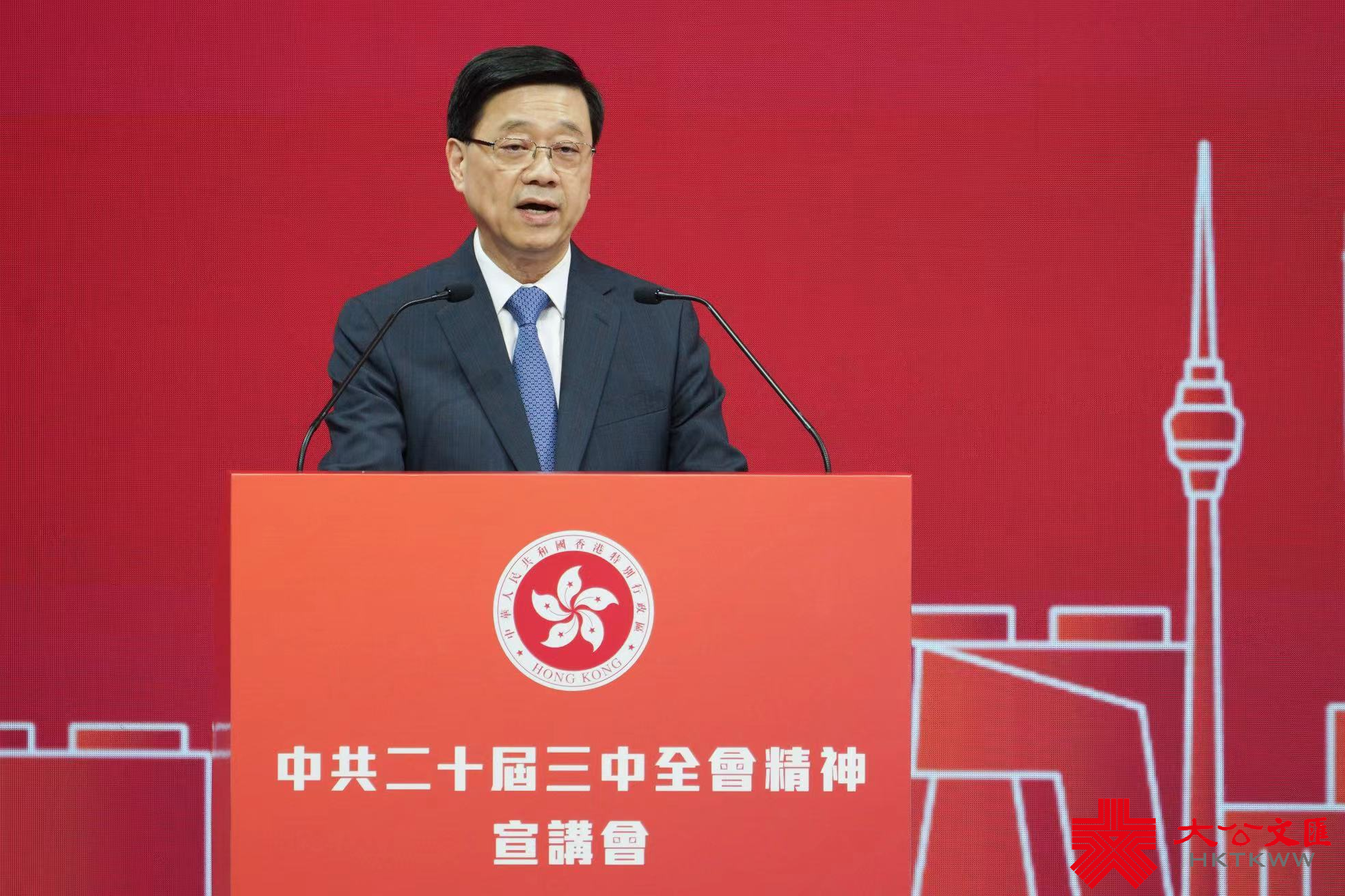 李家超指出,二十屆三中全會不但引領國家邁向中國式現代化和高質量發展,對香港的長遠發展、長治久安同樣至關重要。他表示,香港在國家改革開放中一直扮演積極角色,作為「超級聯繫人」和「超級增值人」,香港更發揮着國家「走出去」和「引進來」的重要橋樑和窗口作用。面對百年未有之大變局加速演進,香港特區必將更積極融入國家發展大局並充分發揮「一國兩制」、「背靠祖國、聯通世界」的獨特優勢,在實現自身突破的同時,以香港所長貢獻國家所需。
