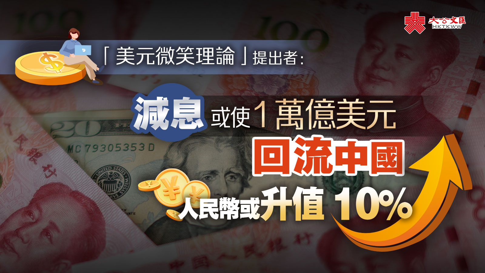 據外媒報道,「美元微笑理論」提出者、前摩根士丹利貨幣策略分析師Stephen Jen認為,美國減息可能會促使中國企業拋售1萬億美元以美元計價的資產,此舉可能會推動人民幣升值至多10%。